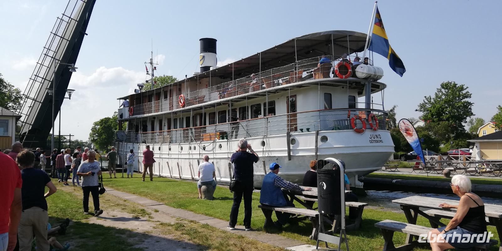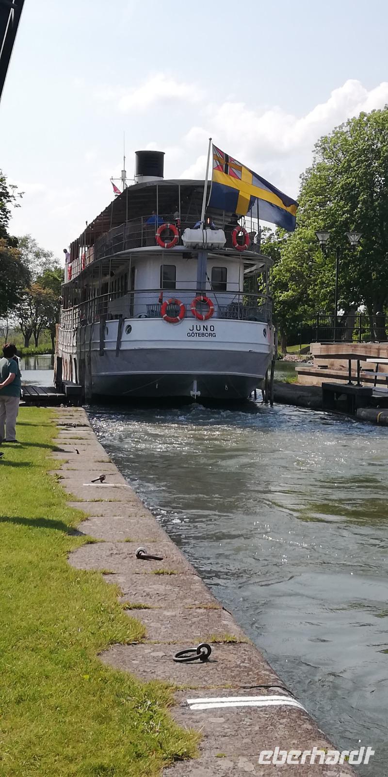 Dort bekamen wir noch gerade mit, wie ein alter Dampfer (Juno) die Schleuse verlassen hat.