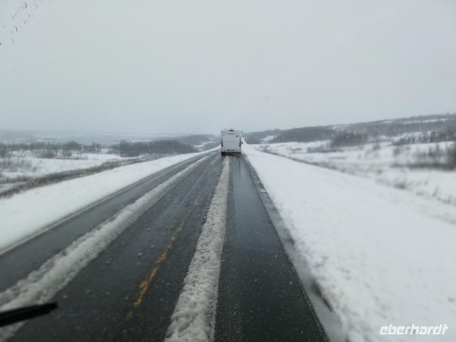 Es war kalt und stürmisch. Unterwegs nahm das Ganze noch zu und die Strasse war gut mit Schnee bedeckt. Der Wind pfiff.