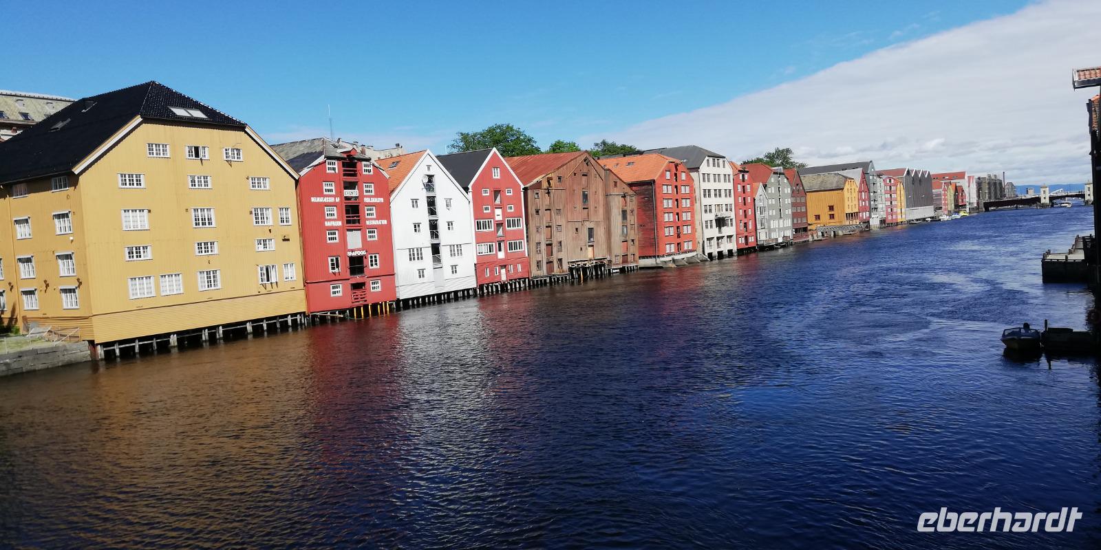 Unser erster Halt war in Trondheim. Hier hatte jeder die Möglichkeit bei warmen Temperaturen sich die Stadt anzusehen. Die Stadt ein Traum. Wir waren doch alle begeistert.Die vielen Speicherhäuser entlang des Flusses und den alten Hafen. Dieser ist heute ein Trend Treff.