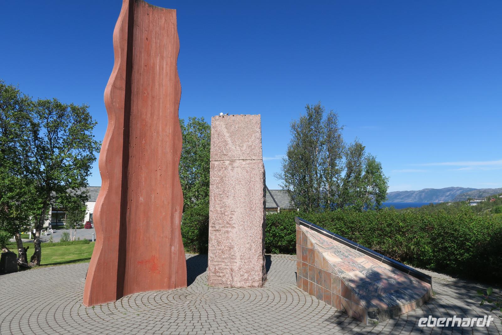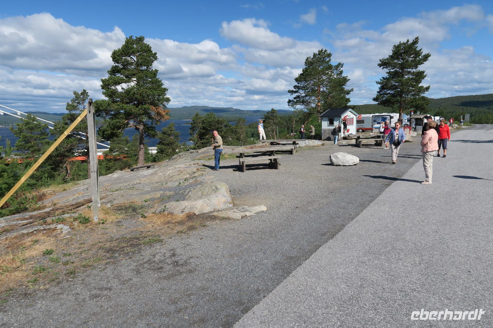 Andenken wieder in Hülle und Fülle. Der Renner war die Ren sowie Elchwurst. Man konnte sie hier probieren und das animierte zum Kauf. Nächster Halt im ehemaligem Kriegsgebiet bei Narvik auf einer Anhöhe gegenüber.