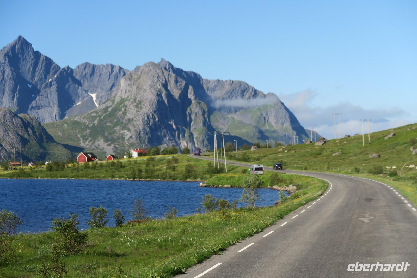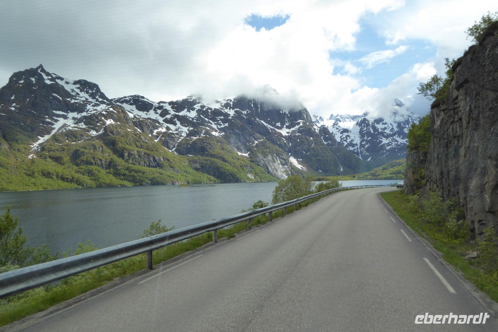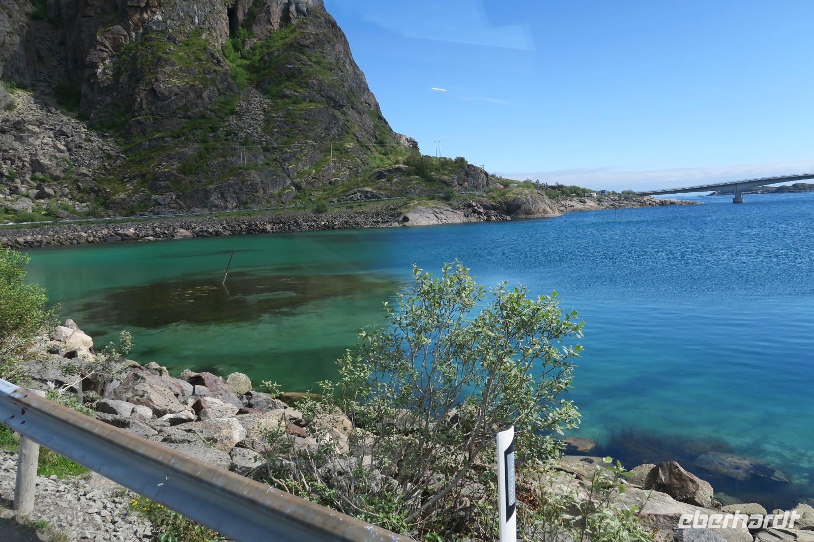 Das Wetter hat sich beruhigt und so fuhren wir bei herrlichem Sonnenschein und 9 Grad zu den Lofoten.