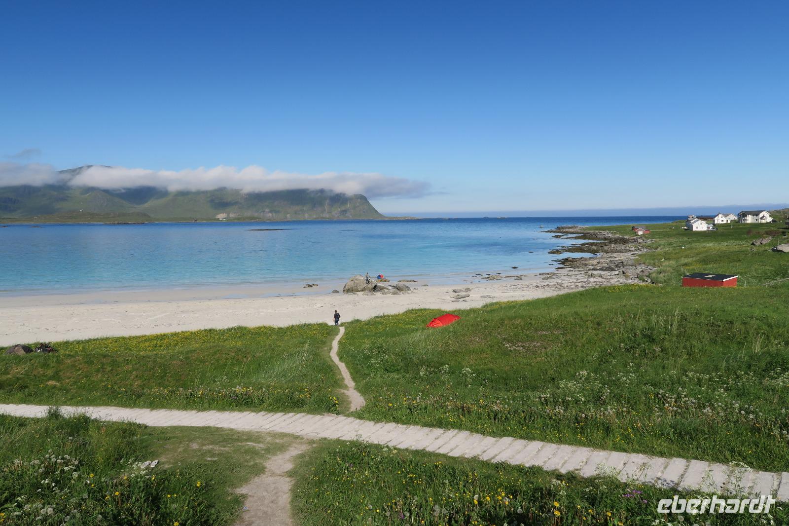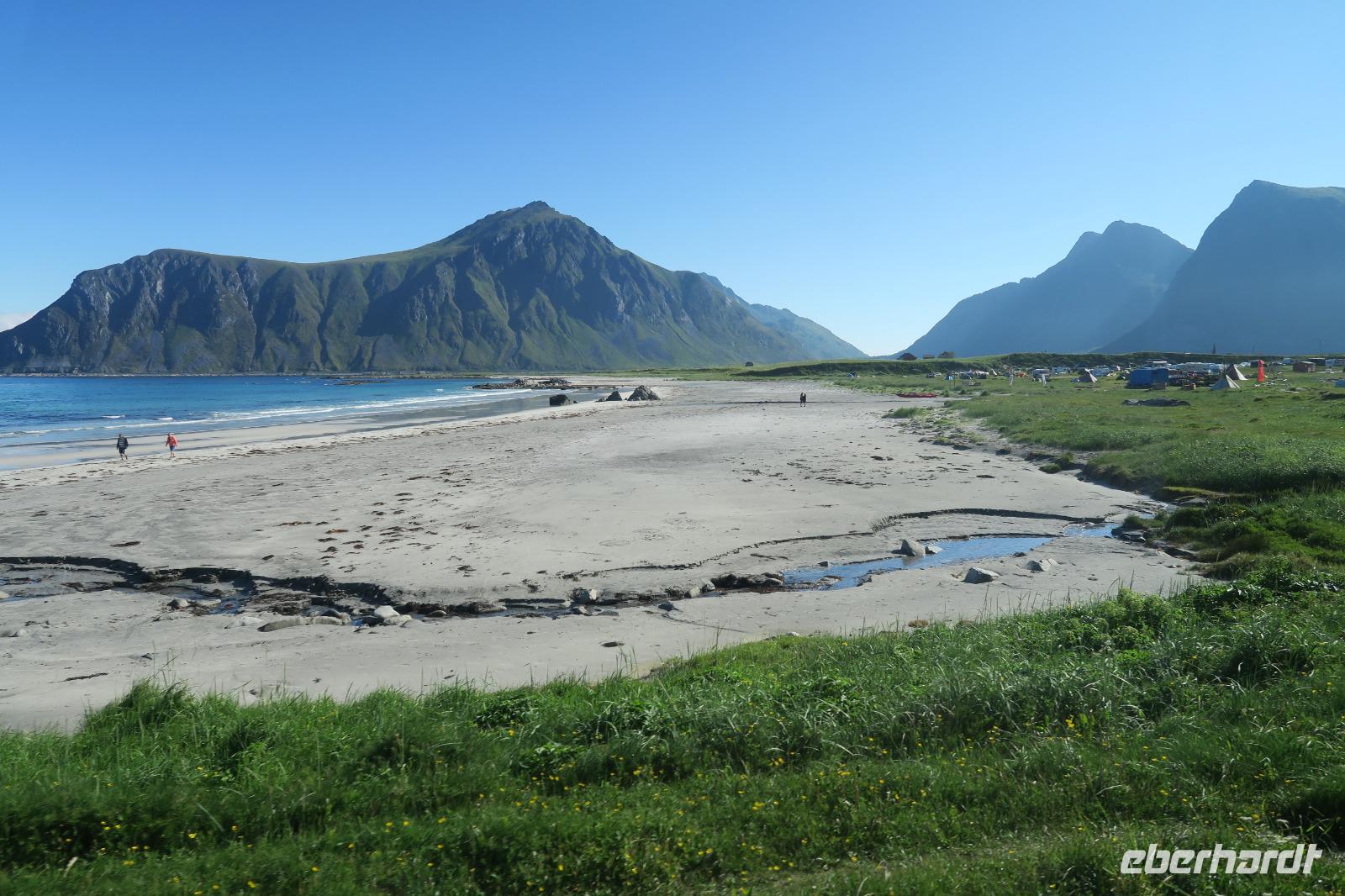 Heute gab es unsere Lofotenrundfahrt. Es ging als erstes zu dem Strand in Ramberg. Feiner weißer Sand und menschenleer. Auf dem Weg dorthin konnte man die schöne Natur bewundern. Klare Sichten und Sonnenschein halfen dabei. Leider blies den ganzen Tag über ein frischer Wind.