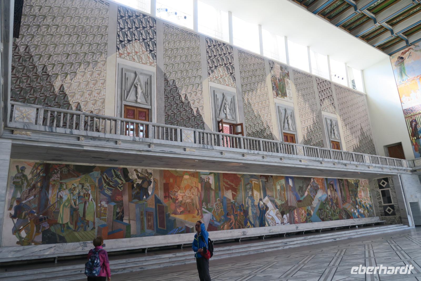 Bei leichtem Regen fuhren wir nach Oslo. Nach der Ankunft ging es zu Fuss zum Rathaus. Jeder hatte nun Zeit es innen zu bestaunen und auch im Anschluss noch Fotos vom Theater, Schloß und Parlamentsgebäude zu machen.