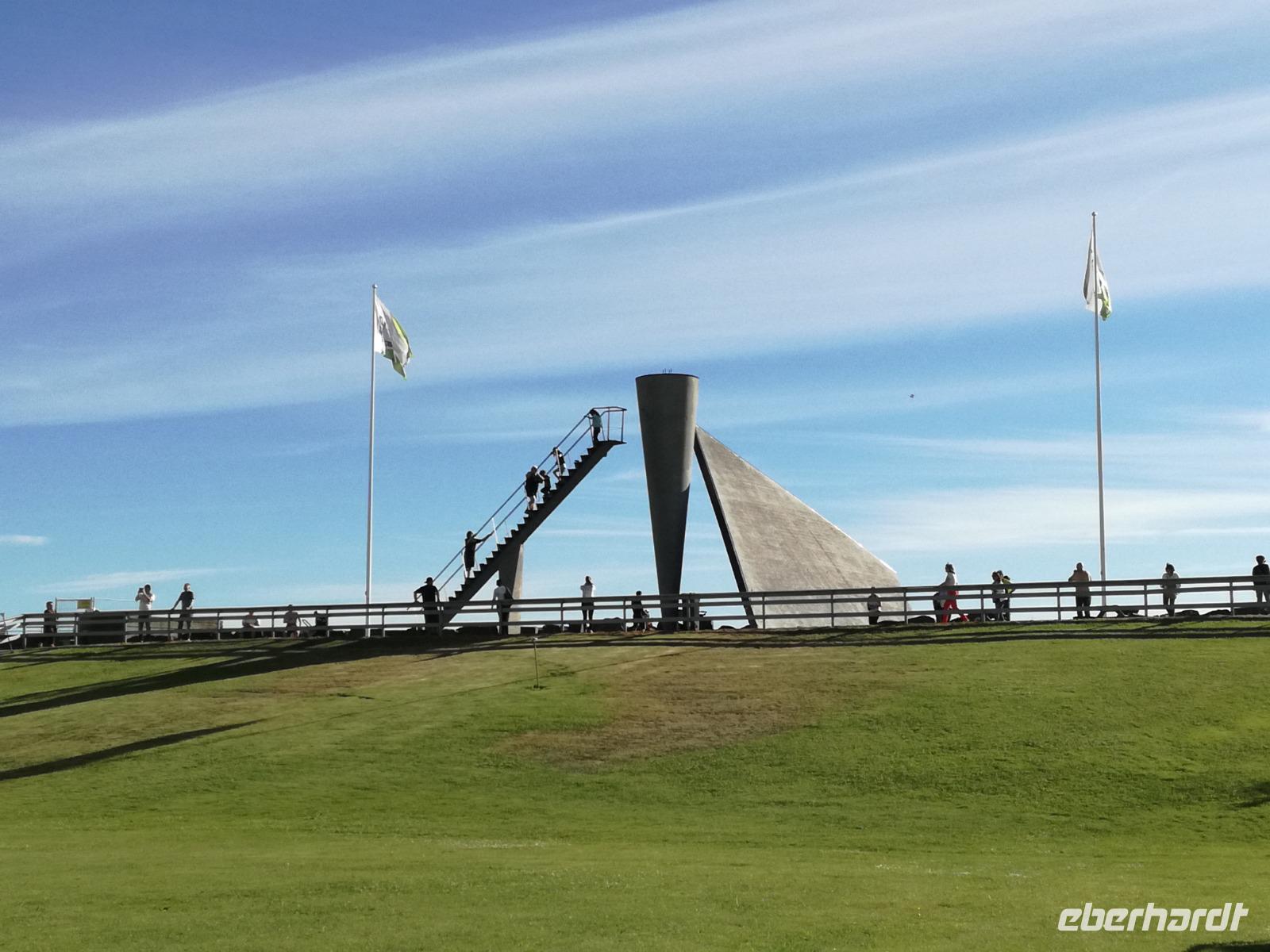 Der nächst längere Halt dann in Lillehammer an der Sprungschanze. Gäste konnten mit dem Sessellift nach oben fahren oder ein Spassfoto auf Skiern schießen.