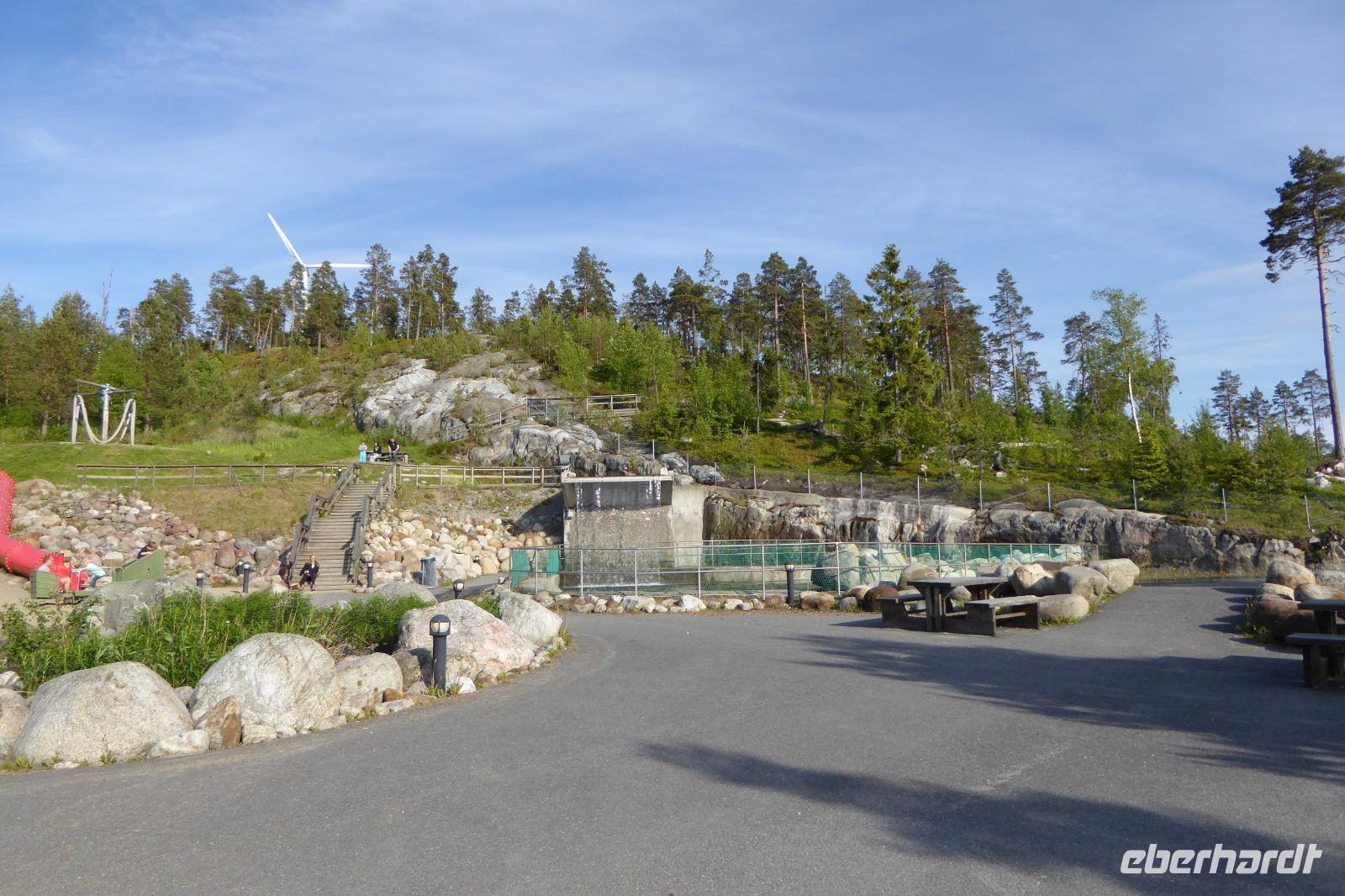 Danach fuhren wir nach Sundvall. Unterwegs machten wir auf zwei Rasthöfen eine Pause. Tierporten und Tönnerö. Letzterer lag schön an einem See. Ein Gast traute sich sogar in die Fluten, obwohl das Wasser doch recht kalt war.