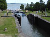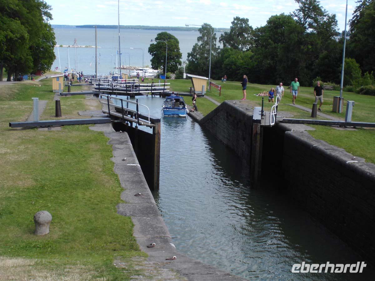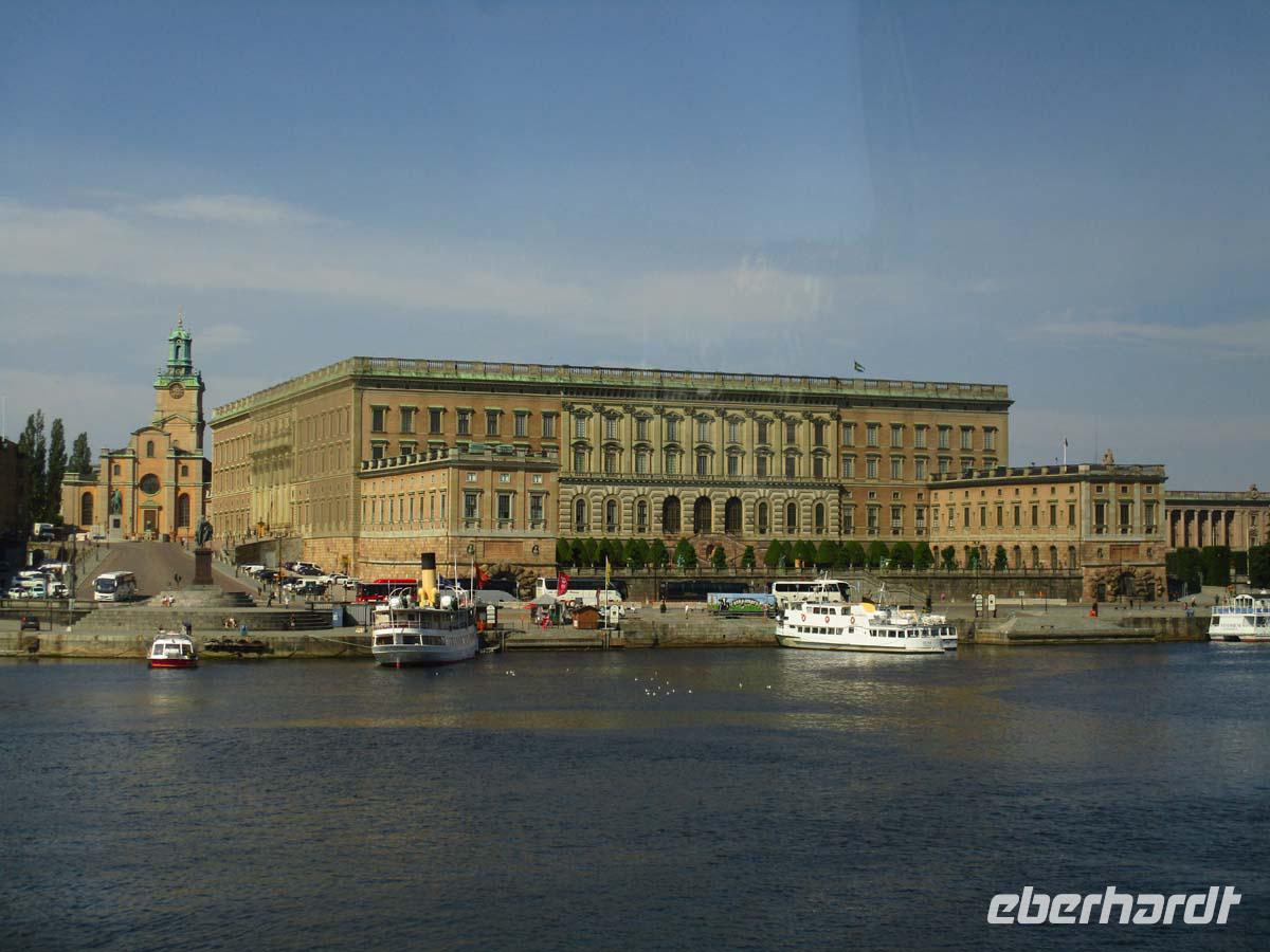Nach dem Frühstück an Bord passieren wir die Festung Nya Älvsborg vor Göteborg und gehen in Schwedens zweitgrößter Stadt an Land. Wir brechen sofort nach Norden auf und bald liegt die fast 600000 Einwohner zählende Großstadt hinter uns. Schweden empfängt uns heute bei strahlendem Sonnenschein. Nach einer ersten Pause beim kleinen Städtchen Ulricehamn erreichen wir am Mittag in Jönköping den Vätternsee, Schwedens zweitgrößten See. Wir pausieren oberhalb von Gränna bei einer Zuckerstangenfabrik, wo die leckeren Polkagrisa hergestellt werden, die weit über Schwedens Grenzen hinaus bekannt sind. Eine Frau namens Amalia Ericson hat sie Mitte des 19. Jh. erfunden; und sie wurden ein Verkaufsschlager. Wer möchte, kann auch die berühmten Zuckerstangen hier ab Werk erwerben. Mittags erreichen wir den größten Runenstein Schwedens in Rök. 3,84 m ist er hoch und besitzt eine außergewöhnlich lange Runeninschrift; mit weit über 700 Zeichen ist sie die längste Runeninschrift überhaupt. Mit dem Besuch der Schleusentreppe bei Berg, legen wir einen letzten Stopp ein. Der historische Götakanal aus dem Jahr 1835 überwindet hier in 7 Schleusenstufen am Roxensee eine Höhe von über 18 m. Leckeres Eis gibt es hier übrigens auch. Unsere Fahrt führt uns weiter an Linköping und Norrköping sowie Södertälje vorbei in die schwedische Kapitale. Am frühen Abend erreichen wir unser Hotel in Stockholm, wo wir uns beim Abendbüffet treffen, und auch unsere 11 Fluggäste treffen. Nun ist unsere Gruppe komplett und mit 38 Reisegästen doch recht groß.