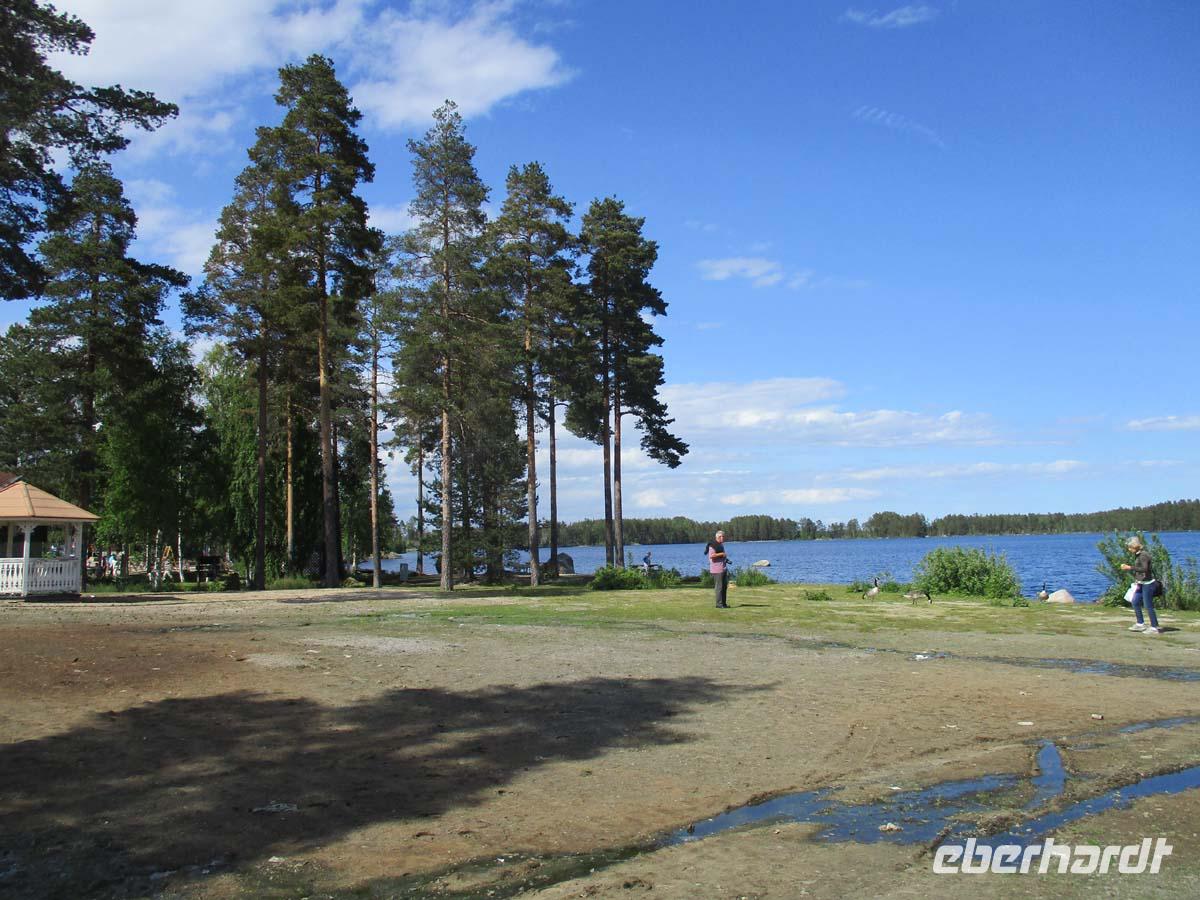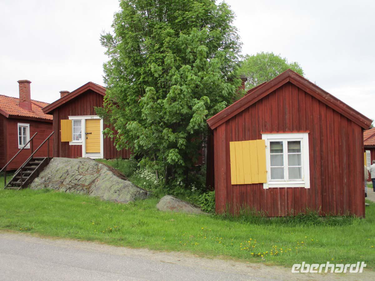 Noch im Stadtgebiet von Sundsvall befindet sich das größte Gräberfeld von Norrland im Stadtteil Högom. Noch 8 von ehemals 16, z. T. sehr mächtigen Grabhügeln aus der Zeitzwischen 44 und 600 n. Chr. Zudem steht hierhin vesetzt auch ein Runenstein, welcher schon christliche Symbolik aufweist und somit in die Zeit nach 1100 zu datieren ist. Weiter reisen wir, nun schon den dritten Tag in Folge bei strömenden Regen entlang der Höga Kusten, also der Hohen Küste. Nachdem das Eis der letzten Eiszeit abgeschmolzen war begann die isostatische Landhebung, welche bis heute anhält. Von den Bergen liegt die Küste mittlerweile drei Kilometer entfernt. Wir machen eine erste ausgedehnte Pause an der gut 1,8 km langen Högakustenbrücke, die 1997 eingeweiht wurde. Sie überspannt den Angermanälven in 40 m Höhe. Nachdem wir unsere Mittagspause auf einem Rastplatz hinter Olofsfors eingenommen haben, begeben wir uns auf fast leeren Straßen weiter nach Norden Fast alle Bewohner Schwedens sind zu Ihren Häuser auf dem Land, am Wasser oder zu Verwandten gefahren, denn es ist Midsommer, und da wird gefeiert. Auch die Städte sind wie ausgestorben. Lövanger ist unser nächstes Ziel und unbedingt einen weiteren Stopp wert. Es handelt sich um eines der wenigen erhaltenen Kirchdörfer. Rund um die Kirche stehen kleine Hütten für die Bauern, deren Weg zur Kirche mehr als eine Tagesreise dauerte, und die hier nächtigten. Heute können sie als Feriendomizil gemietet werden. Sehr ruhig und romantisch. Ein Stück altes Schweden hat sich hier erhalten. Ein technisches Denkmal ist dagegen der alte Leuchtturm von Jävre, der 1871-1957 in Betrieb war, und welcher uns im Vorbeifahren grüßt. Am frühen Abend beziehen wir unser Hotel in Lulea, welches mitten in der Stadt, nur wenige Schritte vom Dom entfernt liegt. Der lädt zum Spazieren genauso ein, wie der Yachthafen, denn auch Lulea liegt direkt am Meer.