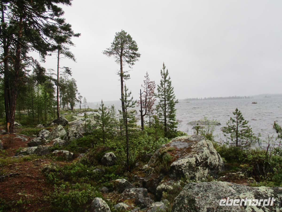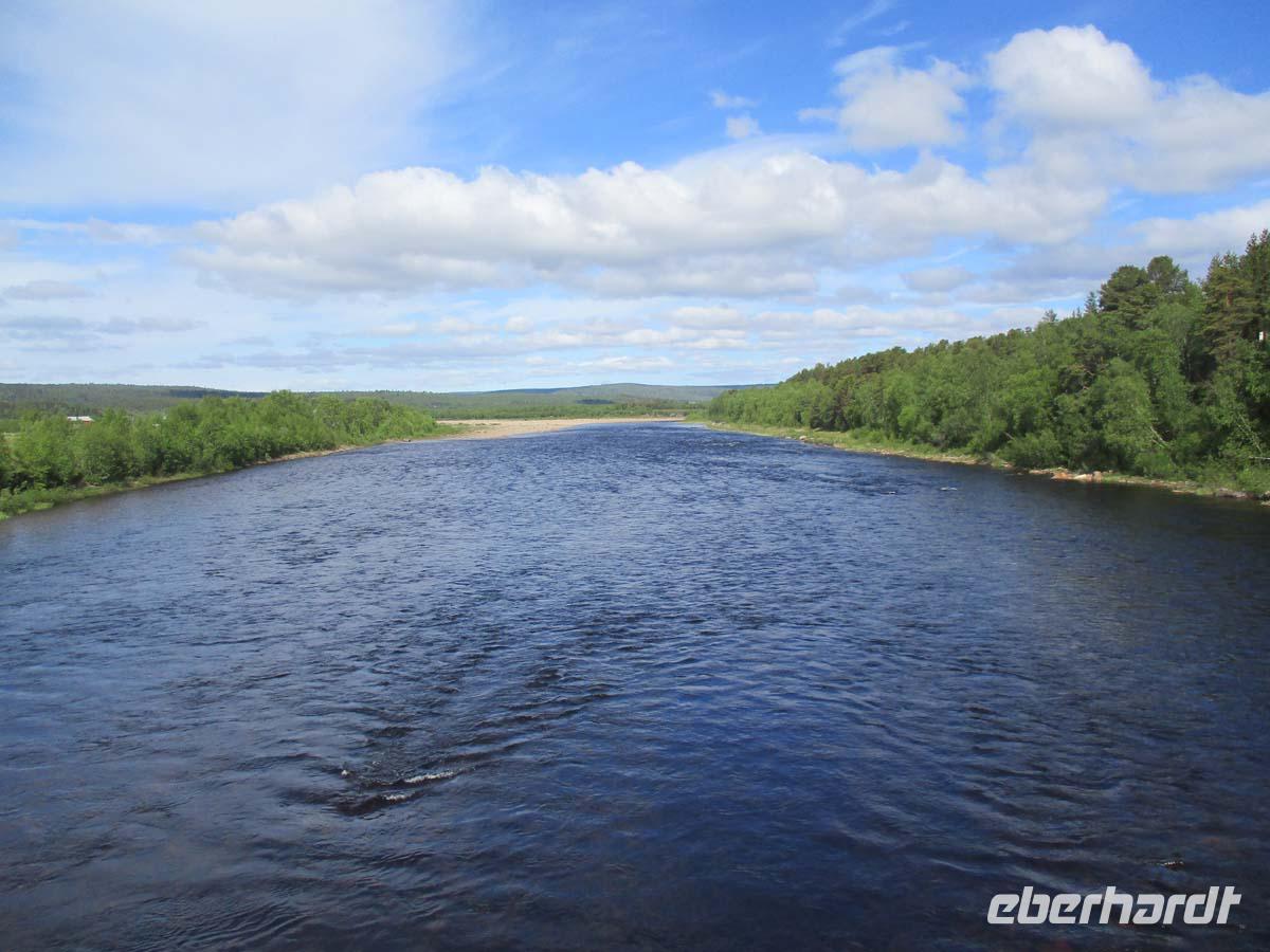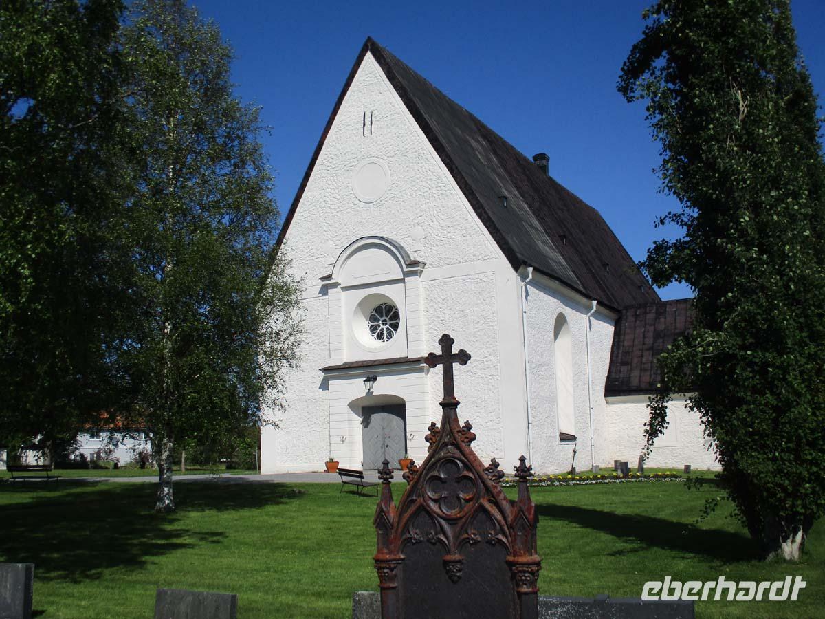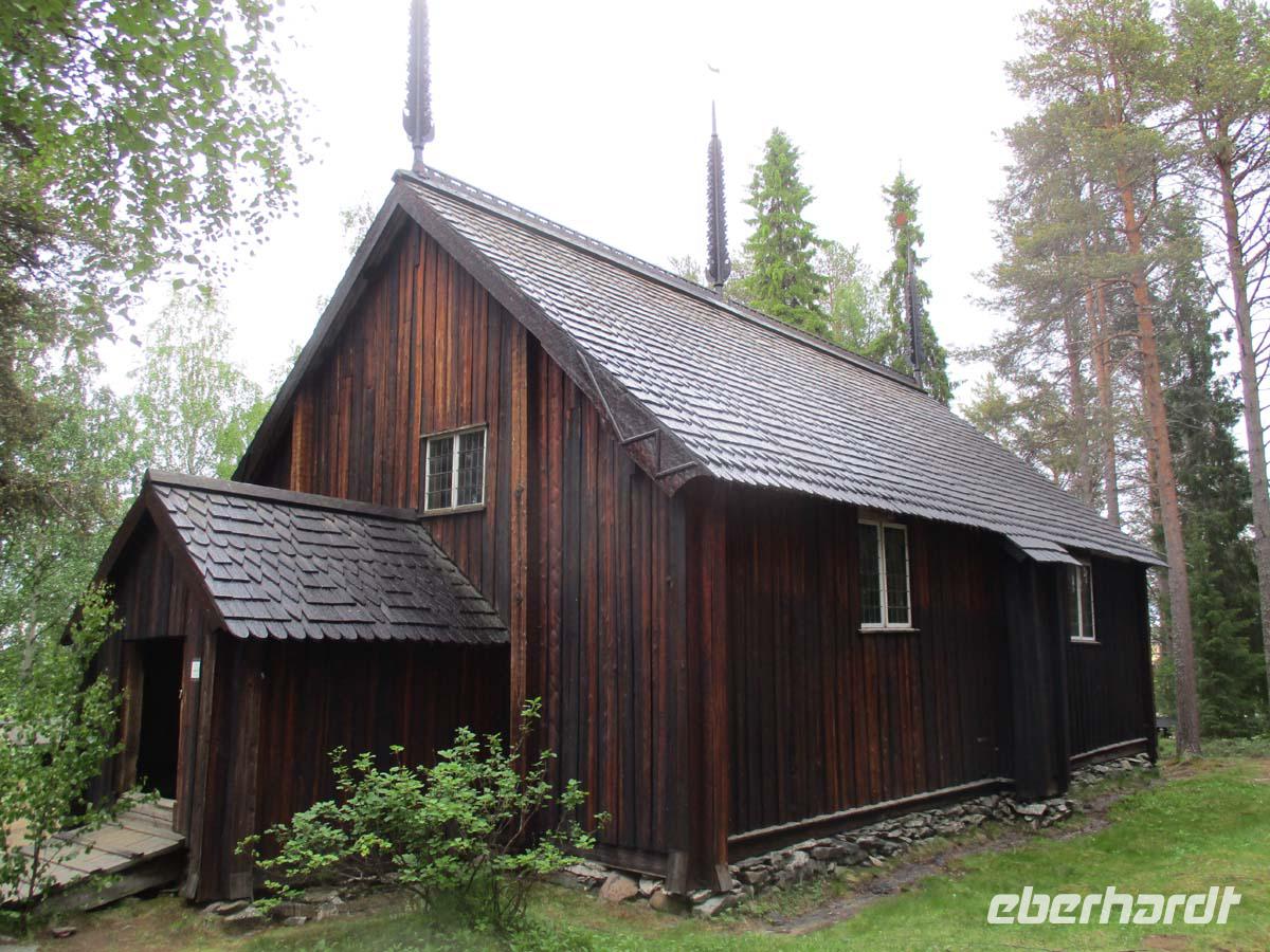 Heute reisen wir nach Finnland. Kurz vor der finnischen Grenze ist die Kirche von Kalix sehenswert. Weil aber der Midsommersamstag ist, schläft ganz Schweden heute aus und die Kirche hat geschlossen. Nun erreichen wir im Bus kurze Zeit später in Tornio die Grenze zu Finnland und stellen unsere Uhren um eine Stunde vor. Zunächst besuchen wir einen riesigen Supermarkt und decken uns für den einsamen Norden mit Vorräten ein. Das Highlight aber ist das Polarkreiszentrum in Rovaniemi. Gleich hinter Tornio beginnen die unendlichen Wälder Finnlands. In Rovaniemi sitzt auch der Weihnachtsmann und man kann Postkarten schreiben, die dann pünktlich zum Fest ankommen. Manch einer probiert einen Hamburger aus Rentierfleisch, gegrillten Lachs, oder läßt sich zusammen mit dem Weihnachtsmann photographieren. Wir stoßen am Polarkreis mit einem Gläschen Sekt auf die Reise an und auch auf den Sonnenschein. Einen weiteren Stop legen wir in Södankylä ein, wo es etwas ganz Besonderes zu sehen gibt; nämlich eine der ältesten erhaltenen Holzkirchen Finnlands. Sie stammt aus dem Jahr 1689 und hat ein Tonnengewölbe unter dem Satteldach. Heute wird dieses Kleinod nur noch für besondere Anlässe genutzt, denn im 19. Jh. baute man unweit eine große Kirche aus Stein. Nach den ersten Hinweisschildern auf Straßenwechsel durch Rentieren erblicken wir auch ein erstes nach einiger Zeit, das direkt an der Straße steht. Es ist Vorsicht geboten, denn die äsenden Tiere achten nicht auf den Straßenverkehr. Die sind halbdomestiziert und laufen fast das ganze Jahr über frei herum. Nun zu bestimmten Zeiten werden sie zusammen getrieben um Schlachttiere Auszusondern. Die Rentierzucht liegt fast einzig in der Hand der Samen, in deren Siedlungsgebiet wir uns nun befinden, den diese Sapmi nennen. Er erstreckt sich von Mittelnorwegen über Nordschweden und Nordfinnland bis zu russischen Halbinsel Kola. Wir kommen bei diesigem Nebelwetter im Hotel an und genießen das Abendbüffet. Heute ist unsere erste Nacht, in der die Sonne nicht untergehen wird.