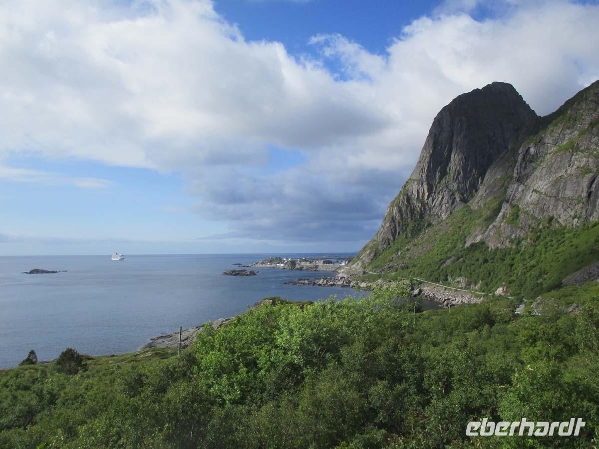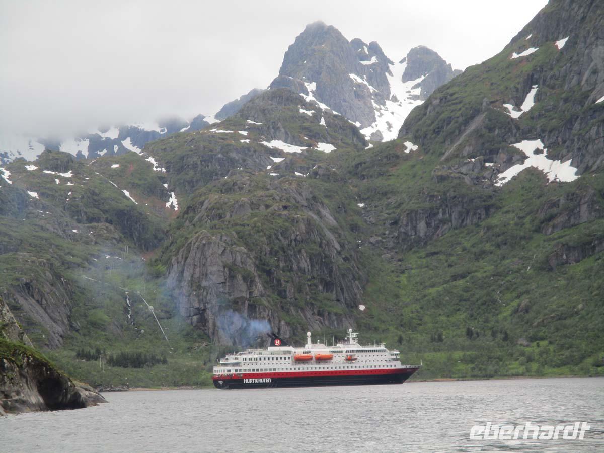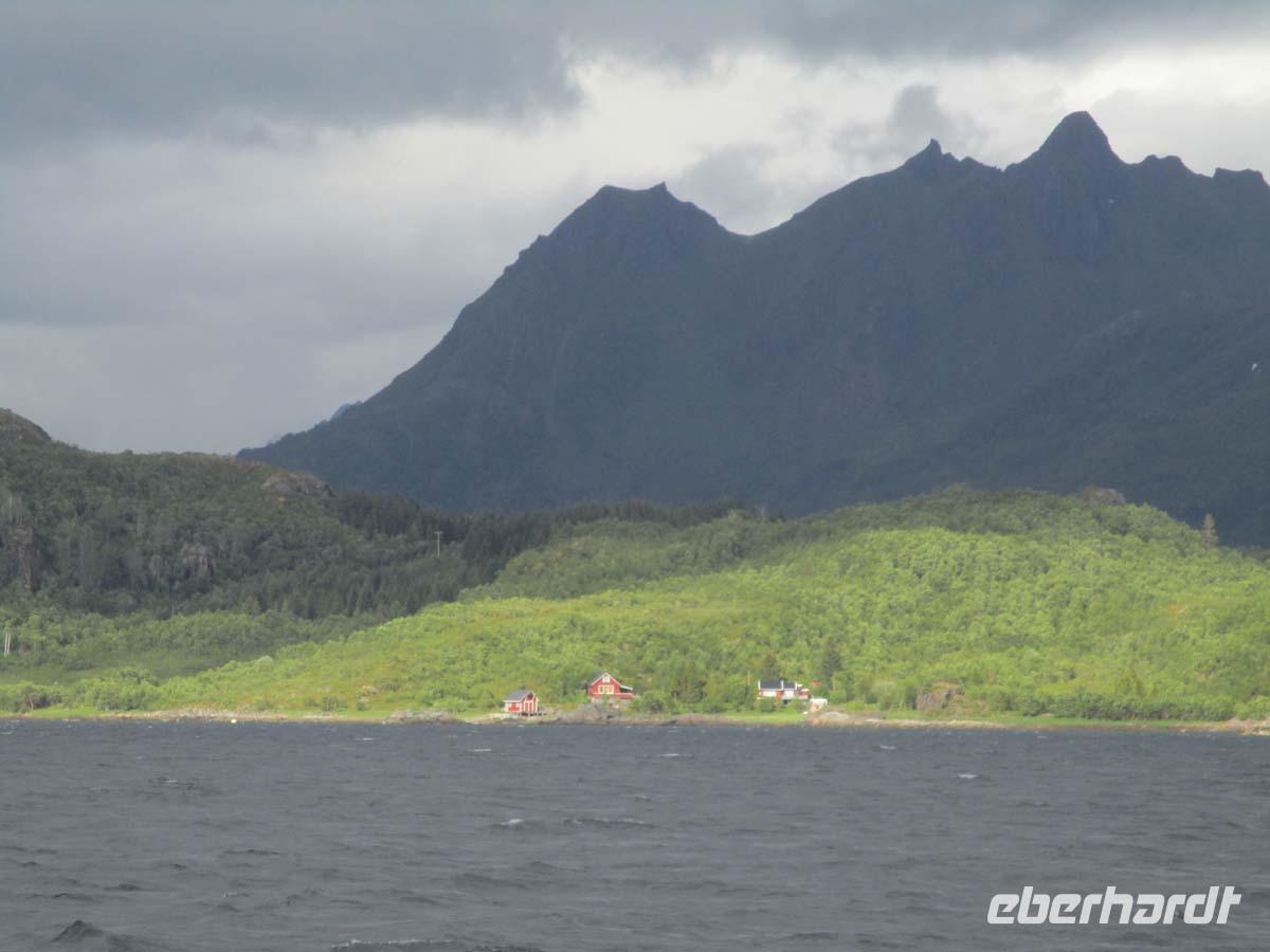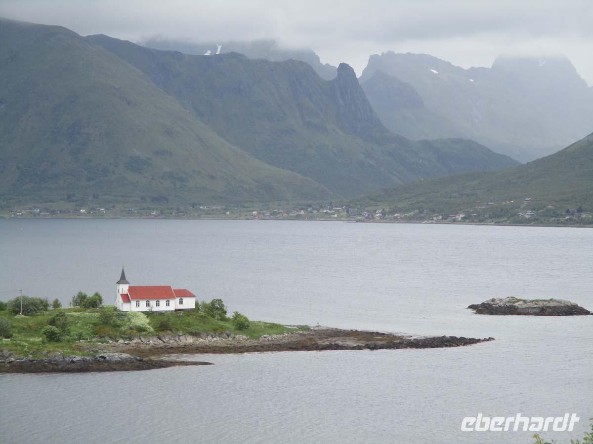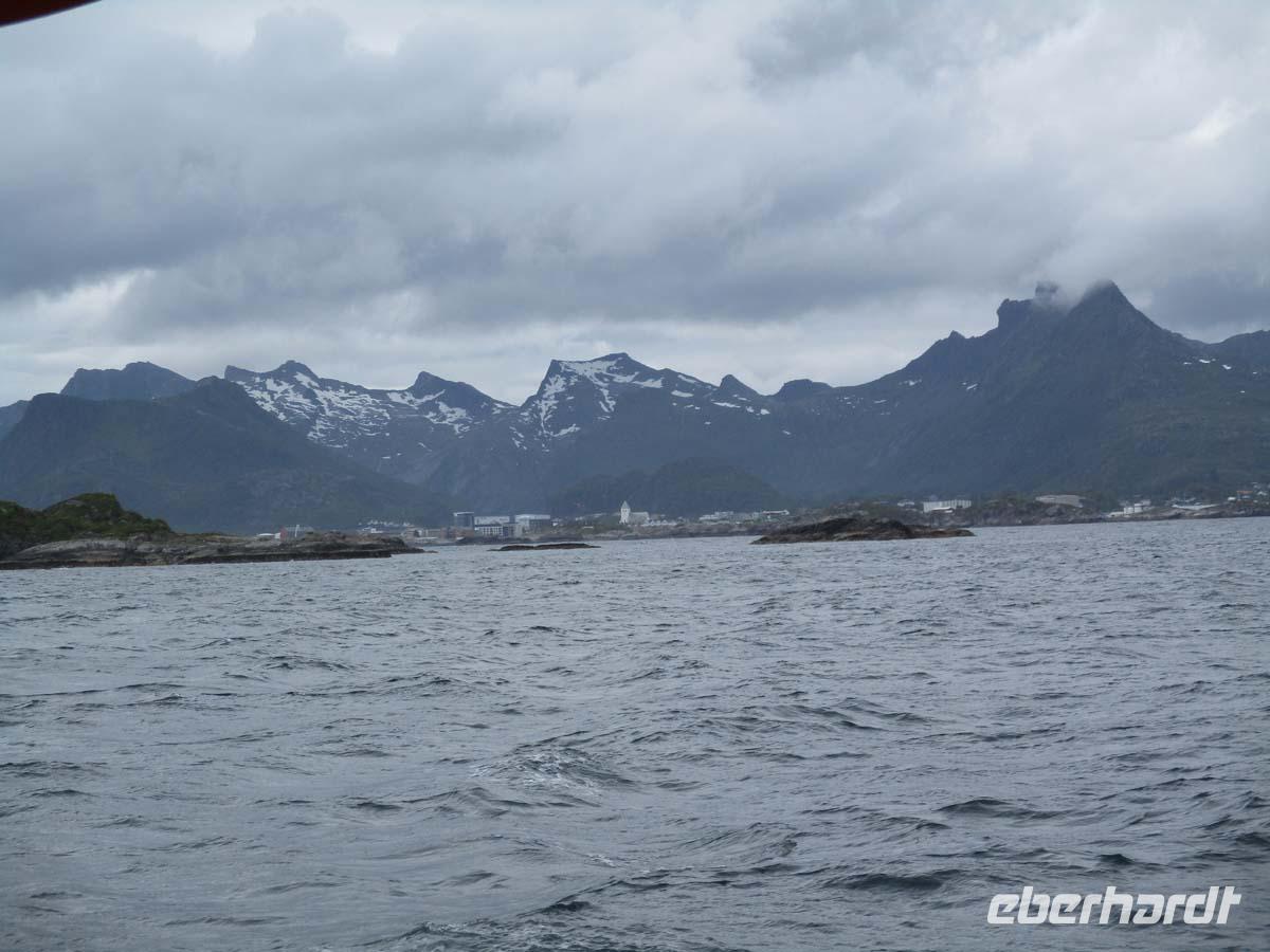 Unsere Reise führt uns heute zunächst am Balsfjord und dem Lyfjell vorbei bis nach Narvik. Vorher unternahmen wir einen Photostop oberhalb des Gratangenfjords. Über all stößt man hier auf Hinweise auf die Schlacht um Narvik 1940. Zu Mittag erreichen wir die Tjellsundbrücke, welche seit 1968 mit 1100 m Länge das Festland mit den Vesteralen verbindet. Die Vesterålen sind eine Inselgruppe etwa 300 km nördlich des Polarkreises vor der Küste Norwegens. Sie schließen nordöstlich an die bekannteren Lofoten an. Auf der Insel Hanöya grenzen Verstalen und Lofoten direkt aneinander. Nach einemr letzten Pause auf dem Parkplatz über dem Austnesfjord erreichen wir Svolvaer, den Hauptort der Insel. Die Stadt hat kaum 3000 Einwohner und so sind wir schnell am Hafen und dem Markt, wo wir unmittelbar unser gechartertes Boot besteigen. Dies wird mit uns eine Fahrt in den berühmten Trollfjord unternehmen. Mitunter nur 100 m breit, ragen die steilen Wände dieses nur 2 km langen Fjords bis über 1000 m in die Höhe. Er zweigt vom Raftsund ab, aus dem uns auch die Nordlys, ein Schiff der Hurtigruten-Linie entgegen kommt. Obwohl man kaum Wellen sieht, schaukelt unser Kahn mitunter recht gewaltig und nach 4 Stunden ist allen etwas kühl. Gerne steigen wir in unseren warmen Bus und erreichen, nachdem wir einen Blick auf die Lofotenkathedrale in Kabelvag geworfen haben am späten Abend unsere Unterkunft in Mortsund. Es handelt sich um ein Ensemble von Fischerhütten, sog. Rorbur, die jedoch größtenteils neu errichtet, und heutigen Ansprüchen gut genügen. Die meisten von uns wohnen sogar im neuesten und modernsten Trakt. Im Restaurant lassen wir diesen langen und interessanten Tag beim Abendmenue ausklingen.