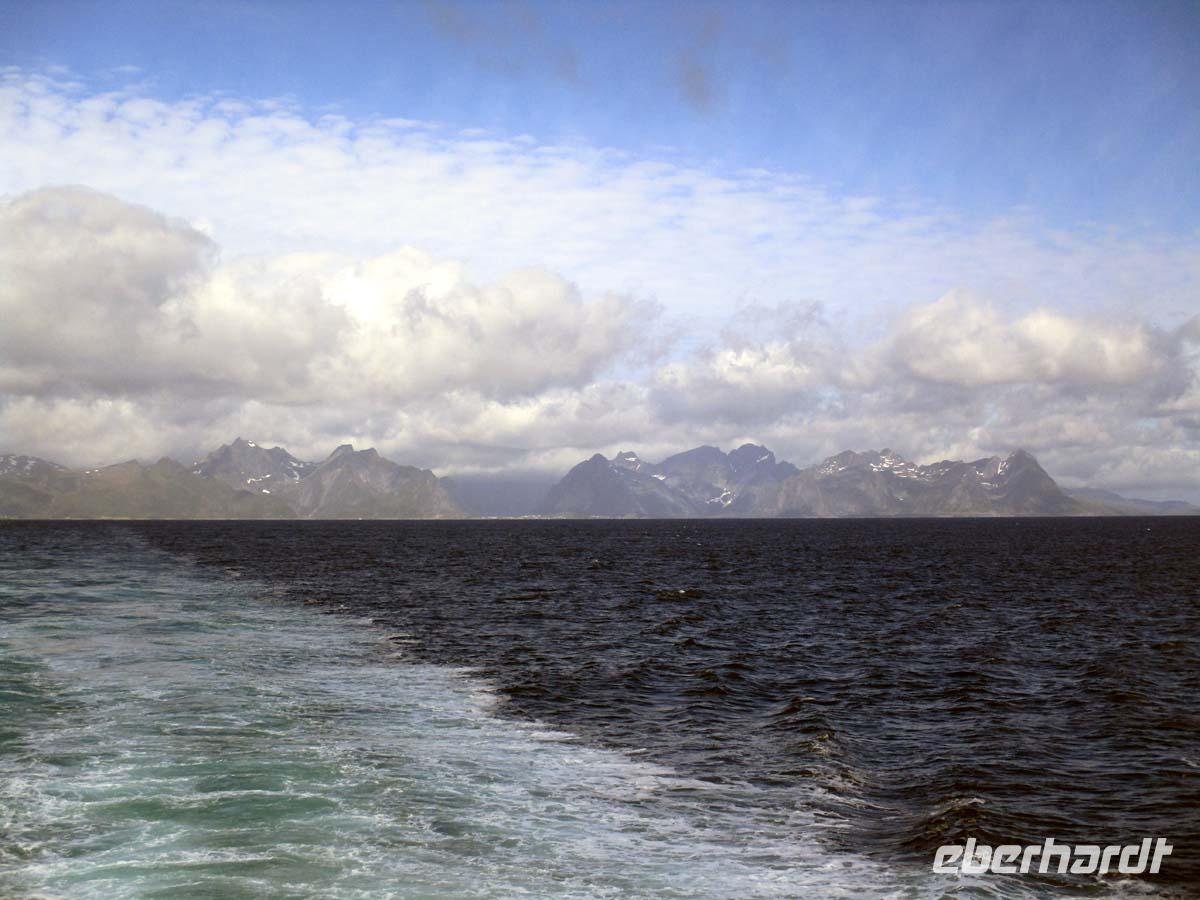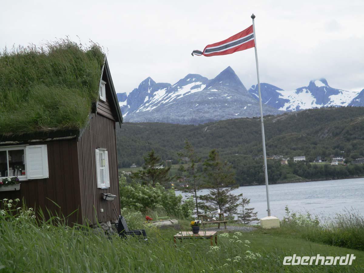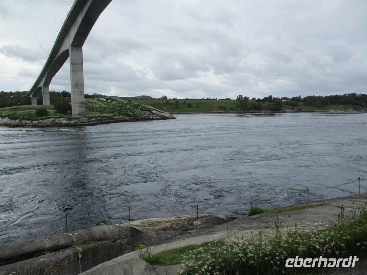 Auf der Reise zu unserer Fähre in Moskenes stoppen wir zunächst an der 1780 erbauten alten Holzkirche von Flagstad. Einem letzten Photostop legen wir am Aussichtspunkt Hamnöy ein. Neben sauberen Toiletten gibt es hier eine wunderbare Sicht auf dem mächtigen Vestfjord, den wir in für die Dauer von 3,5 Stunden mit der Fähre überqueren wollen. Auf dem Fjord verschwinden langsam die Lofoten am Horizont die so wild gebirgig sind. Wir legen in Bodö an und begeben uns auf den langen Weg nach Süden. Zunächst besuchen wir einen der stärksten Meeresströmungen der Welt, den Saltstraumen. Pro Tide werden durvchj den 2 km langen Sund 400 Millionen Kubikmeter Wasser gedrückt. Das hat mächtige Wirbel und teife Strudel zur Folge und es werden Strömungsgeschwindigkeiten von mehr als 40 kmh erreicht. Durch das Saltdalen, das Lönsdalen und das Dunderlandsdalen geht die Reise. Rechts und links befinden sich die Höhen des Saltfjells, auf dem sich zusammen mit dem Svartisengebirge einer der großen Nationalparks Norwegens befindet. Das Saltdalen führt uns auch über eine geraume Strecke auf Fjell, wo zunächst mit zunehmender Höhe die Birken zwergwüchsiger werden, dann ganz verschwinden und ausgedehnten Schneefeldern weichen. Hier queren wir auch wieder den Polarkreis und statten dem norwegischen Polarkreiszentrum einen Besuch ab. Am Abend erreichen wir die Industrie- und Eisenstadt Mo i Rana, die seit über 100 Jahren weitestgehend von der Schwerindustrie lebt.