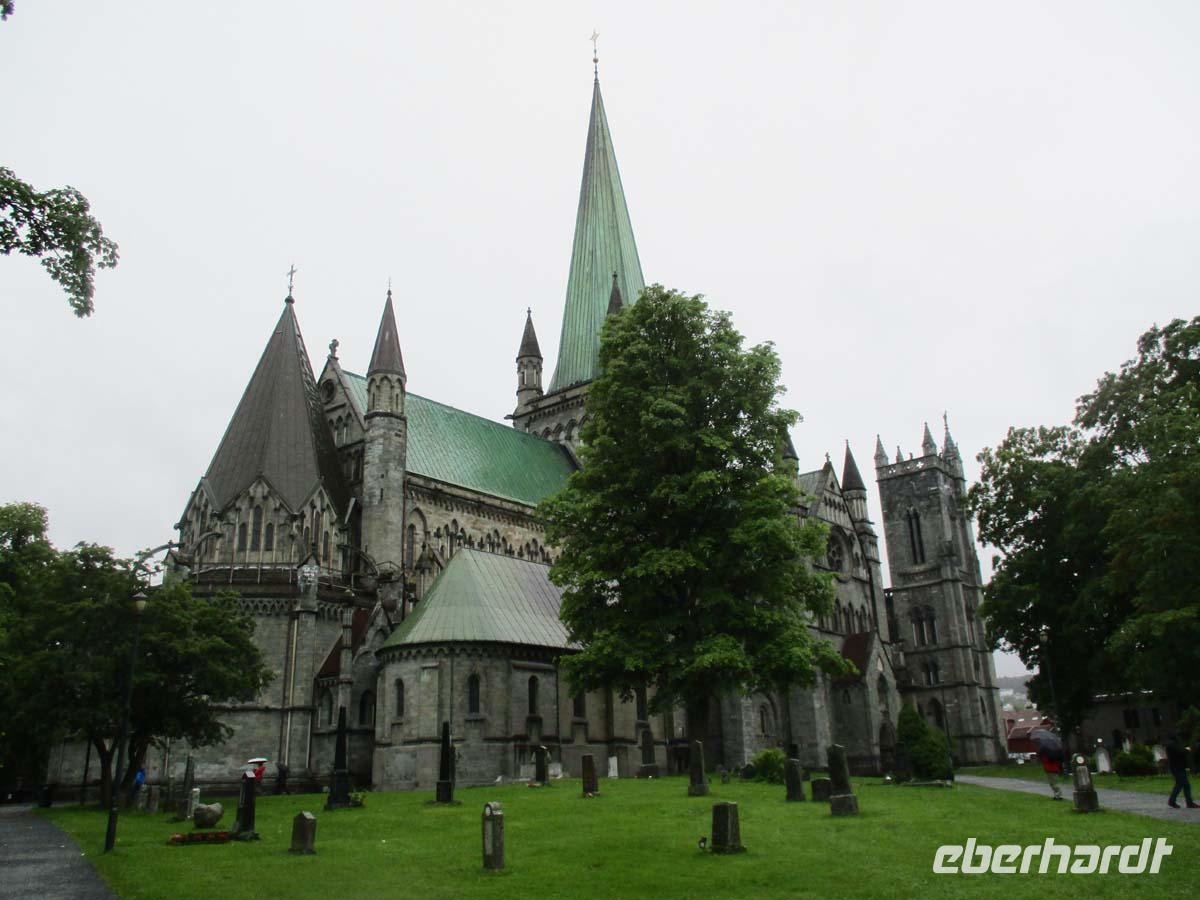 Wir reisen zunächst in die alte Königsstadt Trondheim. Natürlich kann der Nidarosdom besichtigt werden, in dem der heilige Olav 1030 nach seinem Tod in der Schlacht von Stiklestad beerdigt worden ist. Alternativ ist Zeit für einen Gang an den alten Hafen mit den schön restaurierten Speicherhäusern, sowie auf den Markt, wo die Stadt dem Gründervater König Olav Tryggvasson ein Denkmal gesetzt hat. Schon sind 2 Stunden auch bei Regenwetter vergangen. Durchs Drivatal reisen wir zum Dovrefjell. Noch einmal wird die Landschaft karg und unbewohnt. Weite Flächen sind von der Rentierflechte überwachsen. Der höchste Berg, der Snöhättan, zeigt sich uns mit in Wolken versteckter Haube. Er ist ein schneebedeckter 2000er und nach den Gipfeln von Jötunheimen (Goldhöppigen und Glittertind) der dritthöchste Norwegens. Im milden und recht lieblichen Gudbrandstal angekommen reisen wir weiter dem Süden entgegen. Von morgens 9 Grad in Trondheim ist die Temperatur plötzlich auf 27 Grad angestiegen. Welch ein gewaltiger Unterschied. Überfällig ist auch ein Besuch einer Stabkirche. Diese steht in Ringeby. Sie hat zwar geschlossen, aber in frisch saniertem Zustand macht sie auch von außen einen wunderschönen Eindruck. Von den ehemals ca. 750 Stabkirchen sind nur noch 28 gut erhalten. Sie gehören in die Zeit der Christianisierung des Landes im 12. und 13. Jh. Nach dem Besuch der Olympiaschanzen in Lillehammer erreichen wir Hamar, am Mjösasee gelegen, und beenden mit einem reichhaltigen Büffet den letzten kompletten Tag in Norwegen.