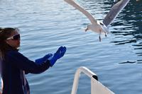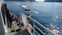 Am Morgen wieder Sonne - die Sicht auf die grandiose Bergwelt ist frei. Wir fahren am Balsfjord vorbei, weiter durch die Berge und über die Fjelle von Troms gegenüber von Narvik am Ofotfjord entlang und dann ist er da, der Elch in seinem Badesee, gleich neben der Straße. Über die Königswegbrücke gelangen wir auf die Vesteralen, die Inselgruppe mit wundervoller Bergwelt - und dann die Lofoten. Wir fahren über die Lofotenbrücke und damit über den Raftsund, der die Lofoten von den Vesteralen trennt. In Svolvear steht uns der nächste Höhepunkt der Reise bevor - die schöne Fahrt mit dem Ausflugsboot durch die Inseln, hin zum Raftsund und hinein in den engen Trollfjord. Die Mädchen der Besatzung füttern die Möven mit Fisch und locken so die Seeadler an. Die sich dann ihre mit Luft aufgepumpte Beute im imposanten Flug mit den Krallen von der Wasseroberfläche holen. Im herrlichen Sonnenschein sind die Fahrt und diese Naturerlebnisse in dieser traumhaften Landschaft einfach unbeschreiblich schön.