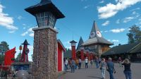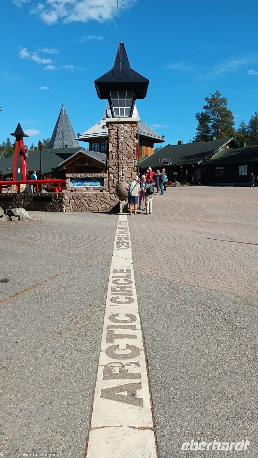 Nach kurzer Fahrt erreichen wir den Polarkreis. Bei einer kleinen Zeremonie wagen alle den Schritt über den Polarkreis, den Schritt in die Arktis. Ganz passend kann natürlich der Weihnachtsmann besucht werden.