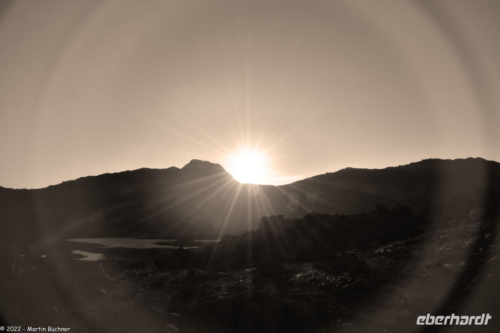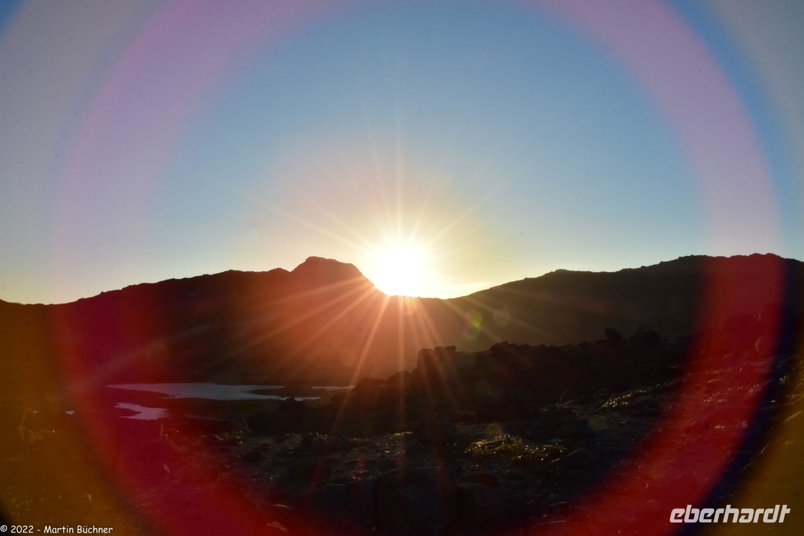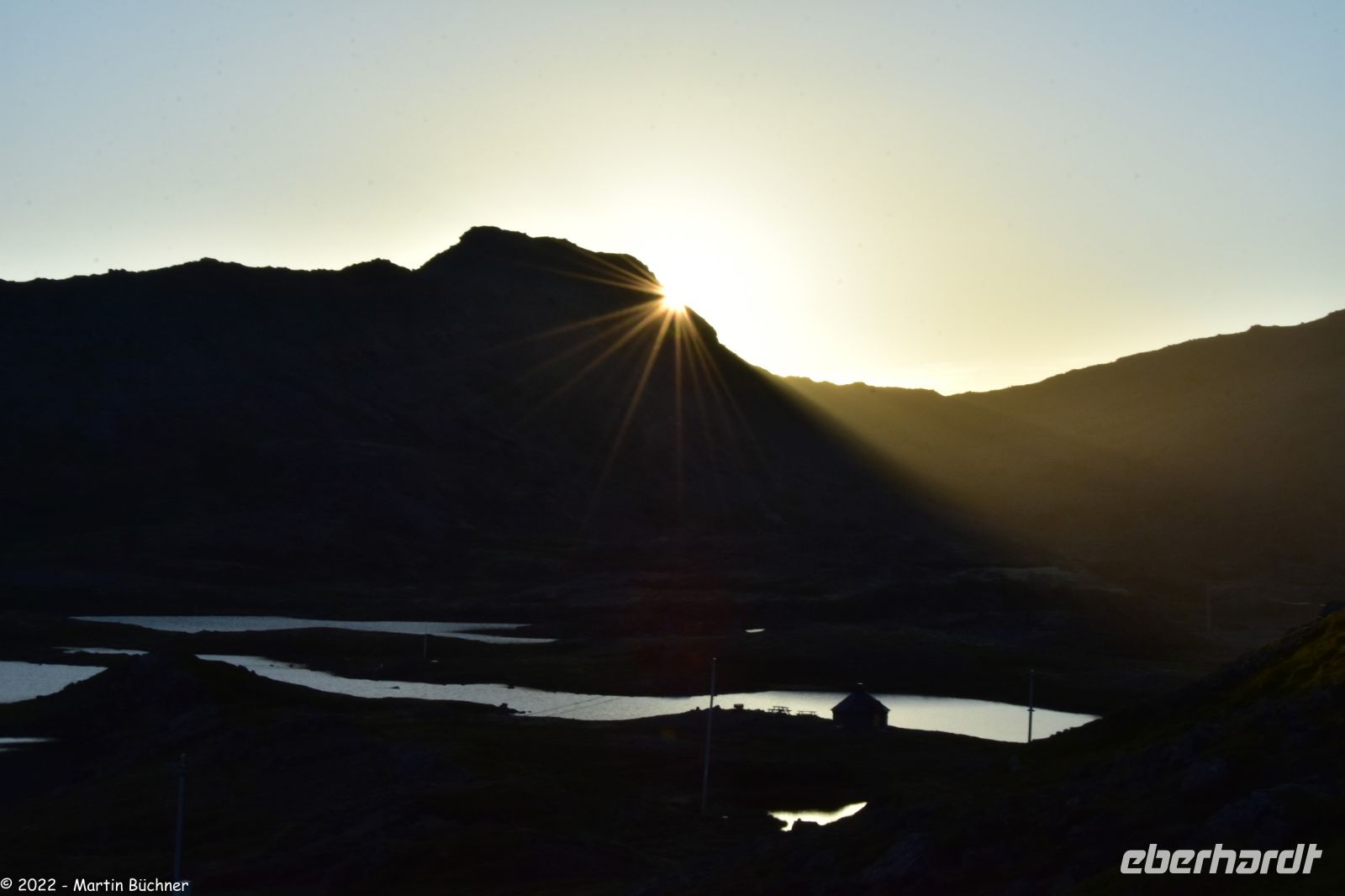 Wir erleben einen fantastischen Sonnenuntergang, der einen kleinen Vorgeschmack gibt, auf den bevorstehenden Polartag, besser bekannt als Mitternachtssonne.