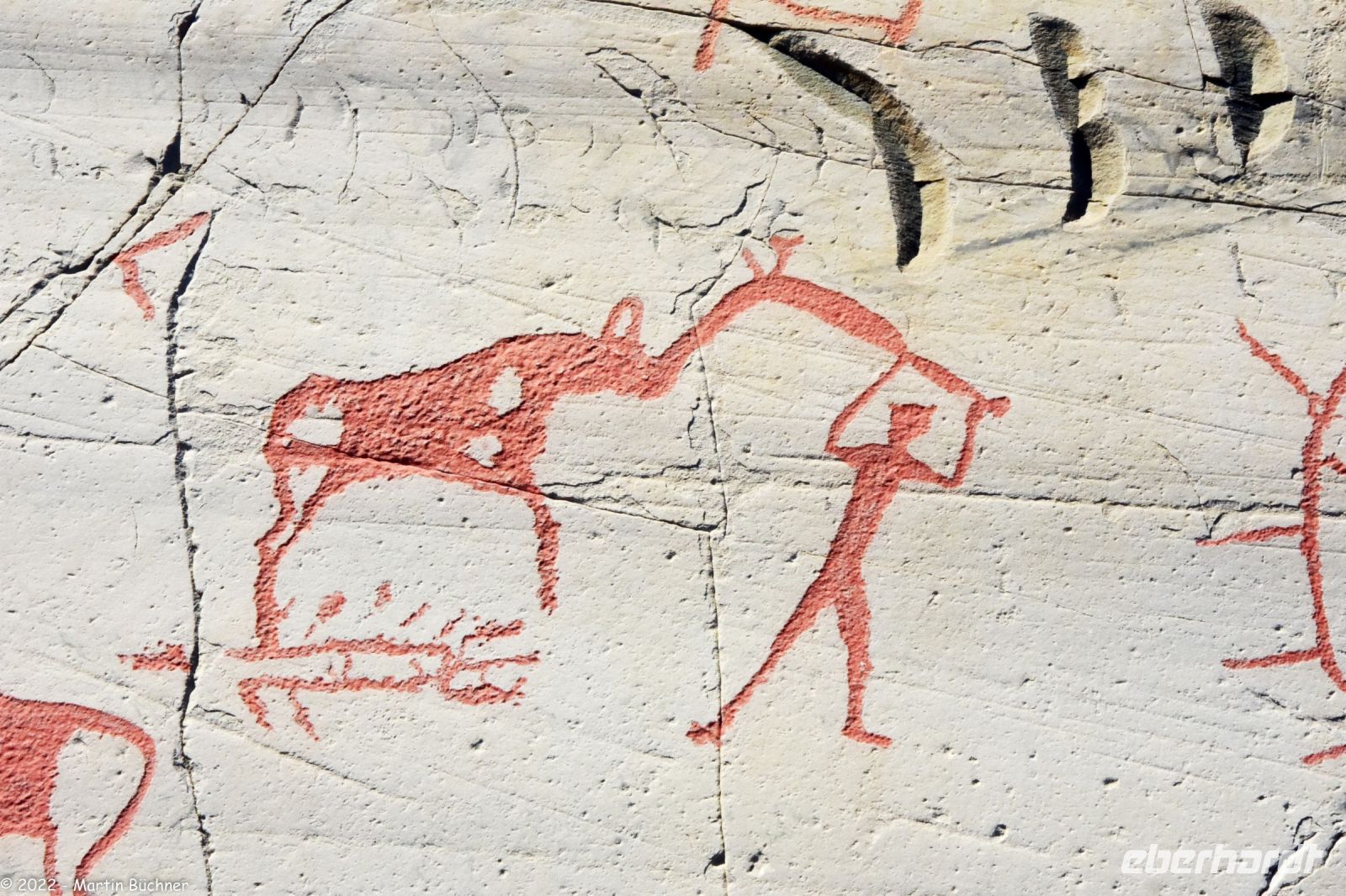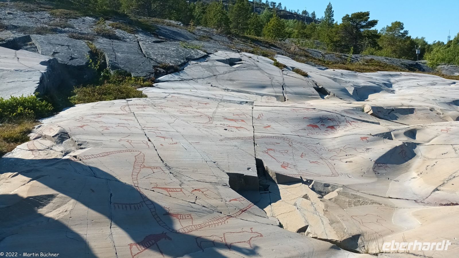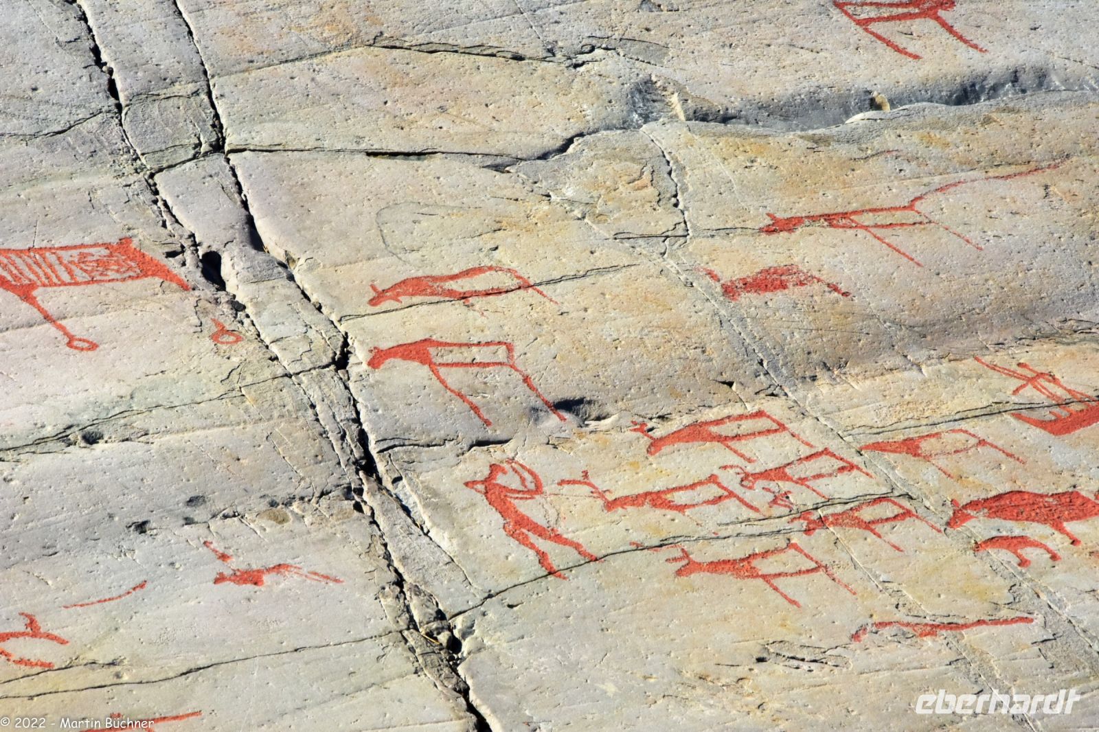 Am Morgen besuchen wir das kleine pittoreske Fischerdorf Kamøyvær. Anschließend verlassen wir die Insel Margerøya in Richtung Süden. Wir folgen dem Verlauf des Porsangerfjords bis nach Lakselv. Unterwegs begegnen uns viele Rentiere auf der Straße. Über die Finnmarksvidda erreichen wir Alta am Altafjord. Wir besuchen die Felsritzungen von Alta, die zum UNESCO Weltkulturerbe gehören. Die ältesten Siedlungsspuren wurden auf über 10.000 Jahre datiert. Mit anderen Worten, als diese Felsritzungen schon 5.000 Jahre alt waren, wurden in Ägypten die Pyramiden gebaut. Bereits unmittelbar nach verschwinden des skandinavischen Eisschild siedelten hier bereits Menschen. Sie lebten von der Jagd und dem Fischfang. Die samische Kultur war ein wichtiger Schlüssel für die richtige Interpretationen der Ritzungen. Einiges davon praktizieren die Samen heute noch. Ein sehr spannender Zusammenhang.