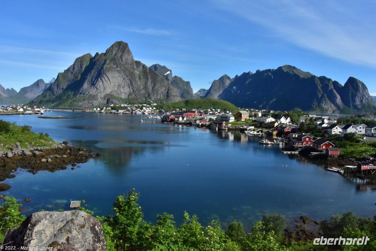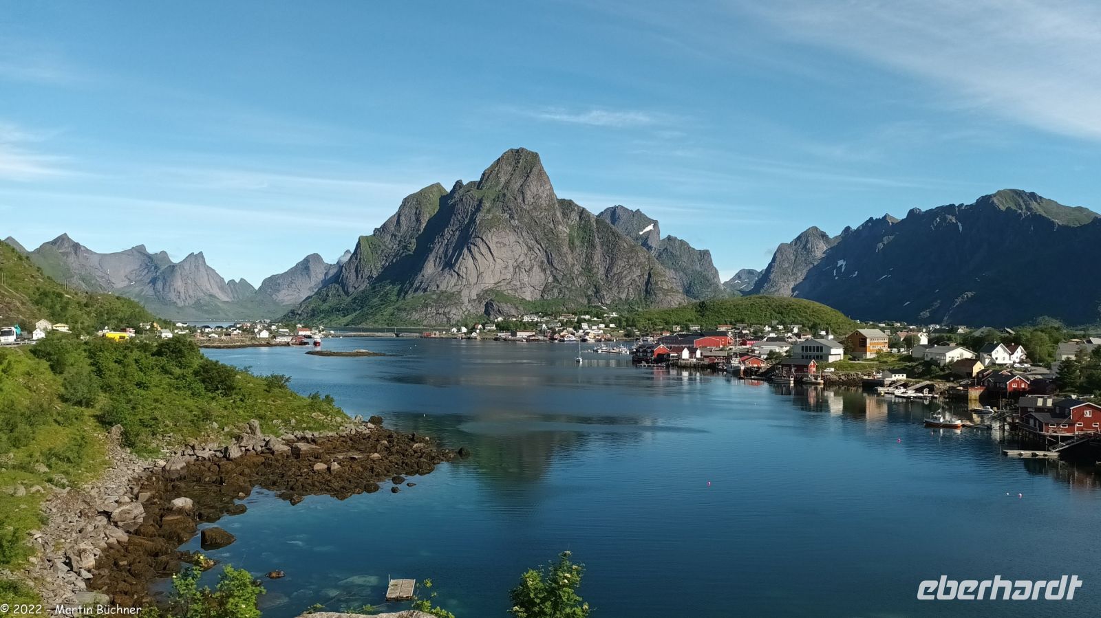 Höhepunkt ist Reine, der berühmteste Aussichtspunkt der Lofoten. Von Moskenes setzen wir mit der Fähre in fast 5 Stunden über den Vestfjord über. Mit jeder Minute beobachten wir, wie sich die berühmte Lofotenwand zu einer schier unüberwindbaren Mauer schließt.