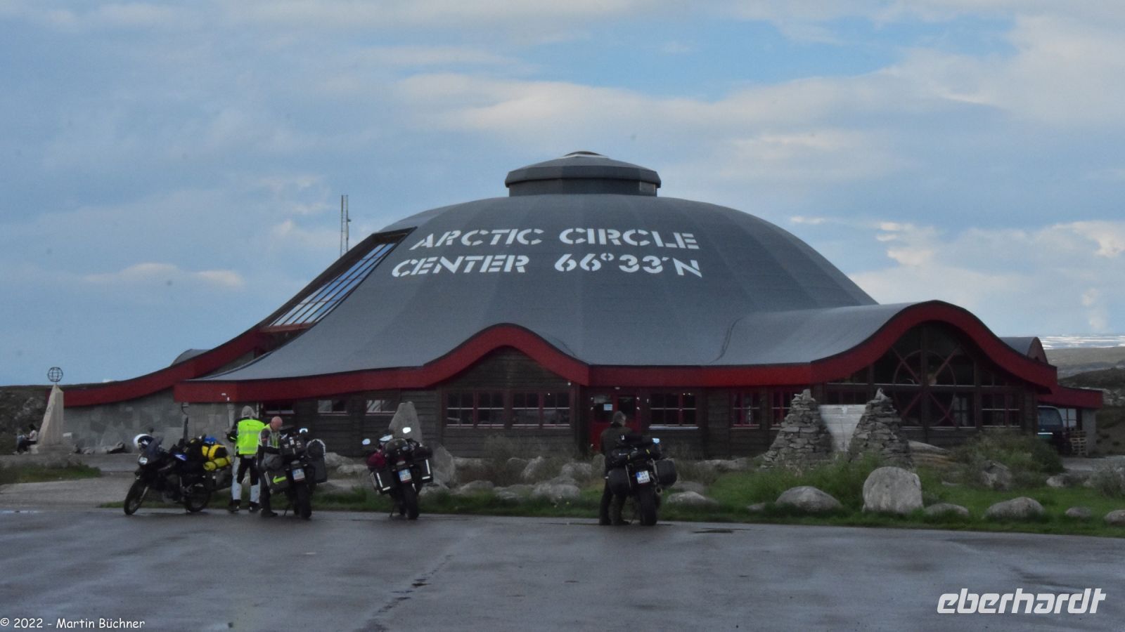 Am frühen Abend verlassen wir die Arktis, wir überqueren den nördlichen Polarkreis, der hier Polarsirkelen genannt wird nach Süden.