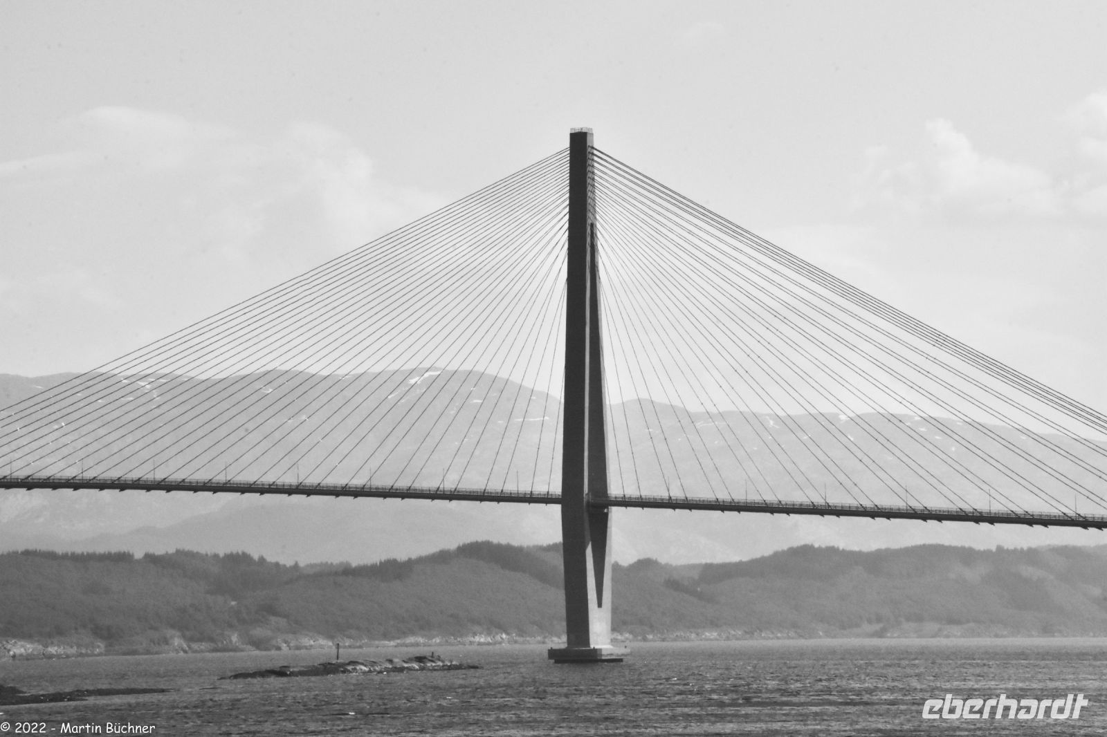 Bei Sandnessjøen erreichen wir die Helgelandskyste, hier steht einer der größten Schrägseilbrücken Europas.