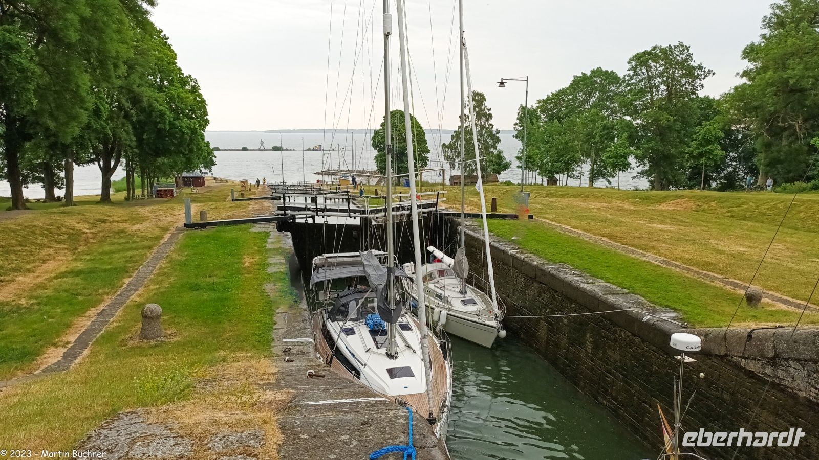 Am Nachmittag legen wir einen Stopp am Göta Kanal ein, dem „Blauen Band Schwedens“. Dieser Kanal stammt noch aus der ersten Hälfte des 19. Jh., aus einer Zeit, in der es in Schweden noch keine Eisenbahn gab, Waren noch mehrheitlich per Schiff transportiert werden mussten und im Süden noch die verfeindeten Dänen reichlich „Sundzoll“ für die Durchquerung des Öresunds kassierten.