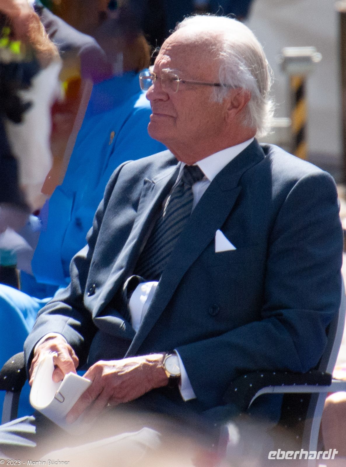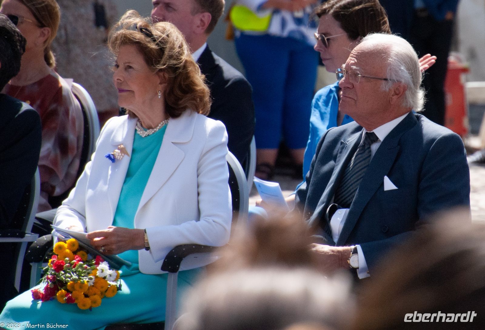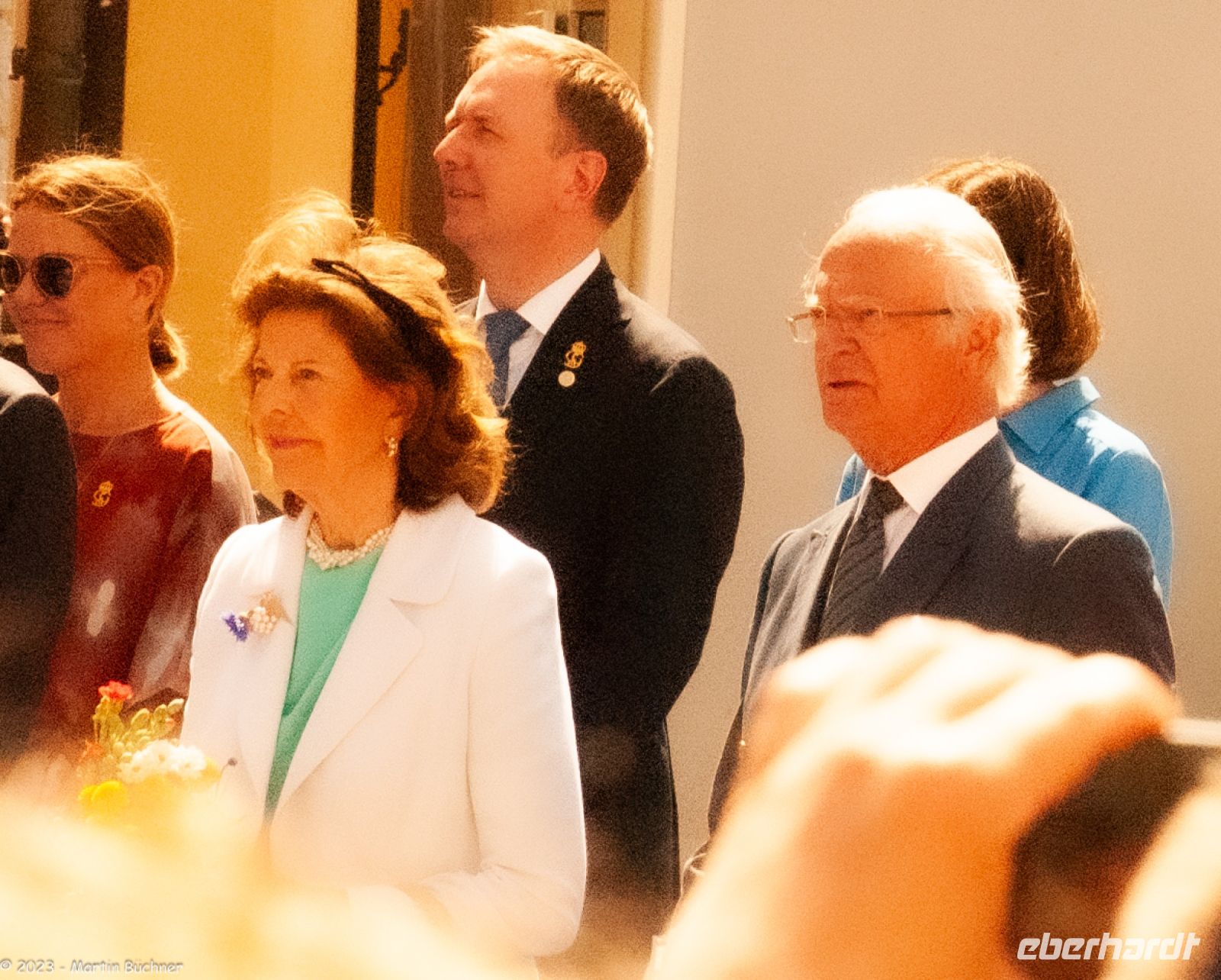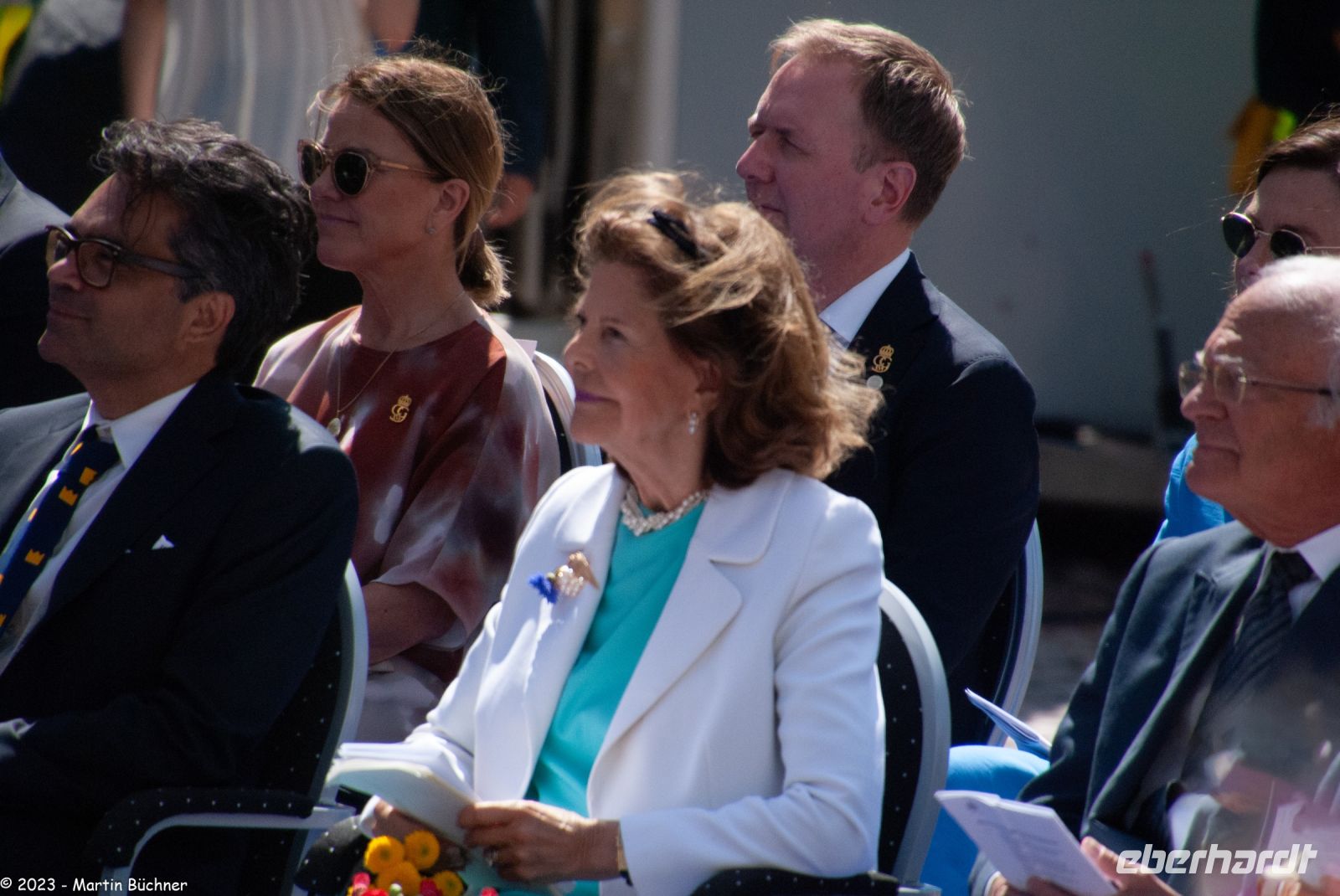 Hier könnte unser Aufenthalt in Stockholm zu Ende sein. Wie heißt es in einem schwedischen Kinderbuch: „Du musst jederzeit auf den König vorbereitet sein, er könnte zu Besuch kommen!“ – Das Zitat hat heute recht – König Carl XVI. Gustav und Königin Silvia sind heute anlässlich des 50. Thronjubiläums zu Gast im Stockholm län. Der König hält vor dem königlichen Stadtschloss eine Rede! 50 Jahre Thronjubiläum und 500 Jahre Schweden im gleichen Jahr! Das muss gefeiert werden!