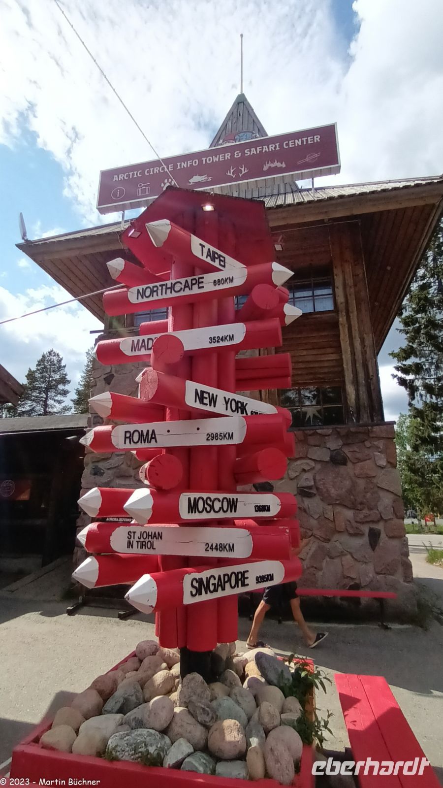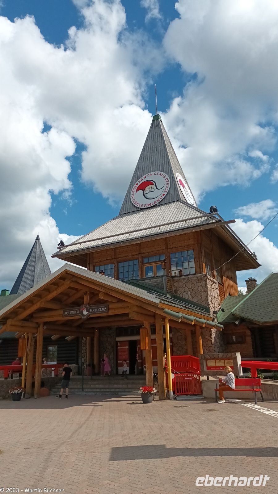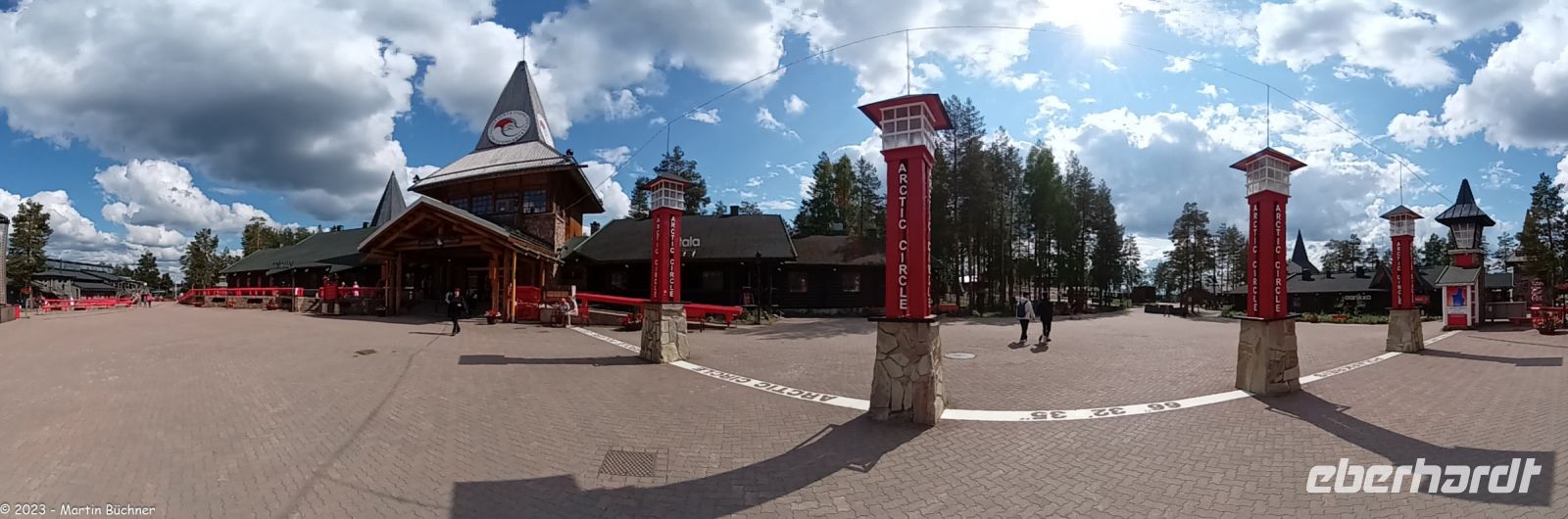 Nach kurzer Fahrt erreichen wir den Polarkreis. Bei einer kleinen Zeremonie wagen alle den Schritt über den Polarkreis, den Schritt in die nordische Arktis. Ganz passend kann natürlich der Weihnachtsmann besucht werden.
