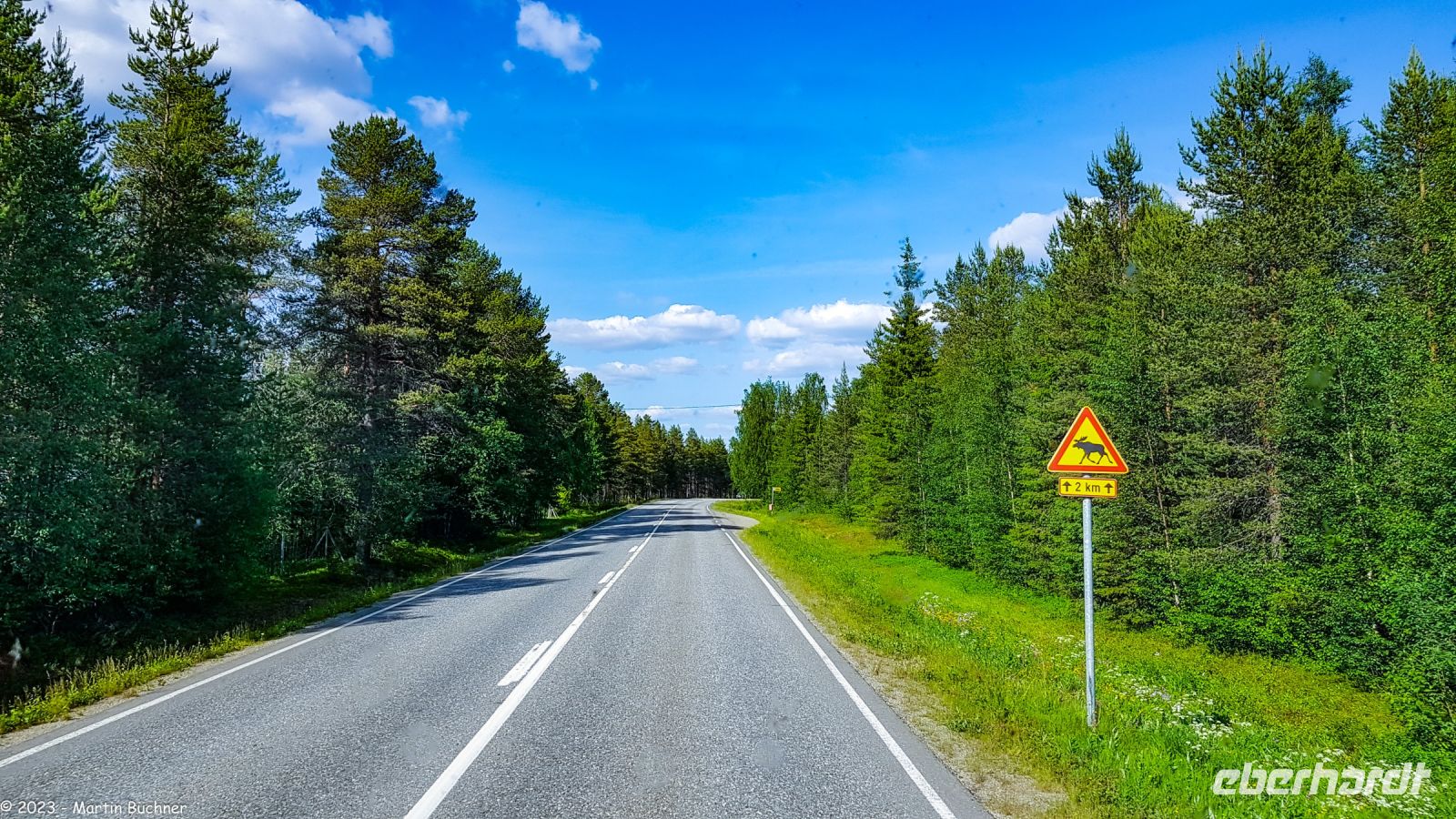 Wir erreichen nun offiziell das Rentier-Schutzgebiet, die Straßenschilder künden davon. Wir sind offiziell in Sapmi, das Land der Samen, dass wir gern Lappland nennen. Hier leben die Bergsamen (Fjellsamen), die einzige Samengruppe, die Rentiere züchten darf.