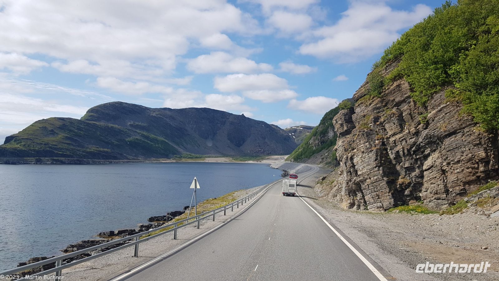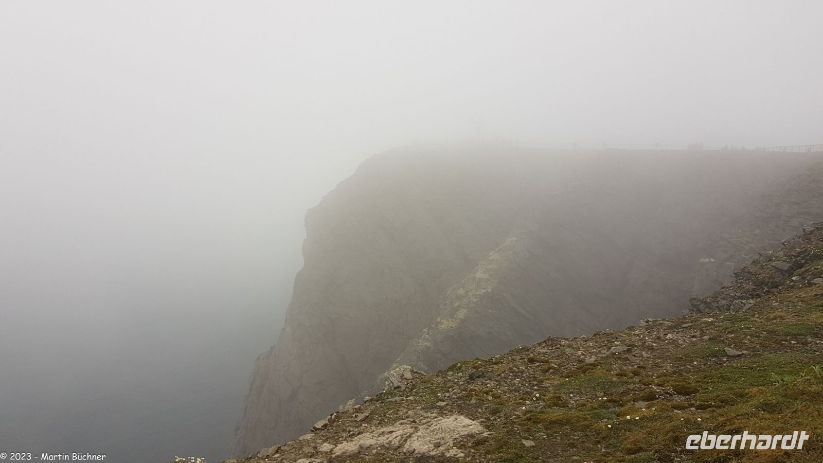 Wir Wetter ist heute wechselhaft, der anfängliche Blick auf die Barentssee verschließt sich später durch Nebel. Der Blick auf die Mitternachtssonne bleibt uns an diesem Tag leider verwehrt. Es werden noch Gelegenheiten kommen!