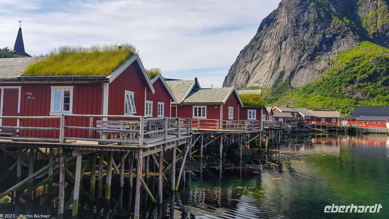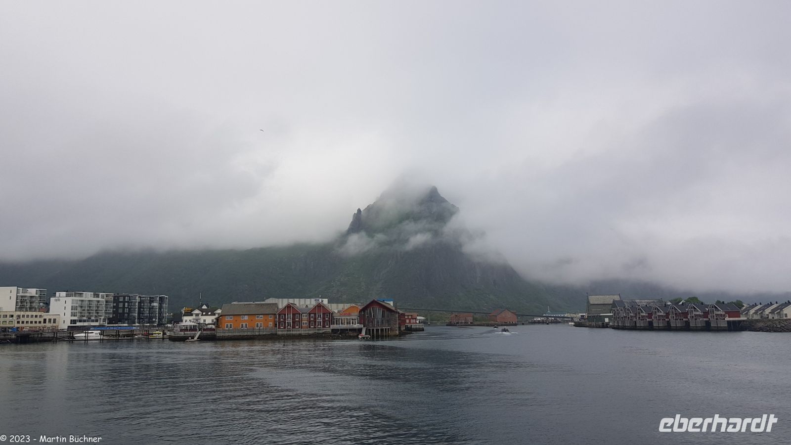 Das Wetter ist durchwachsen. Wir besuchen zunächst eines der berühmten und traditionellen Fischerdörfer namens Henningsvær. Aufgrund einer glücklichen Fügung findet unsere Bootsfahrt ab Svolvær erst am Nachmittag statt, nun mit deutlich besserem Wetter!