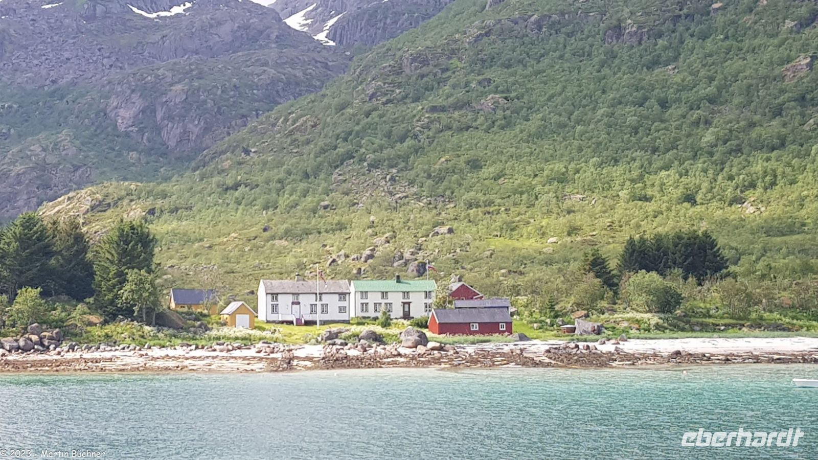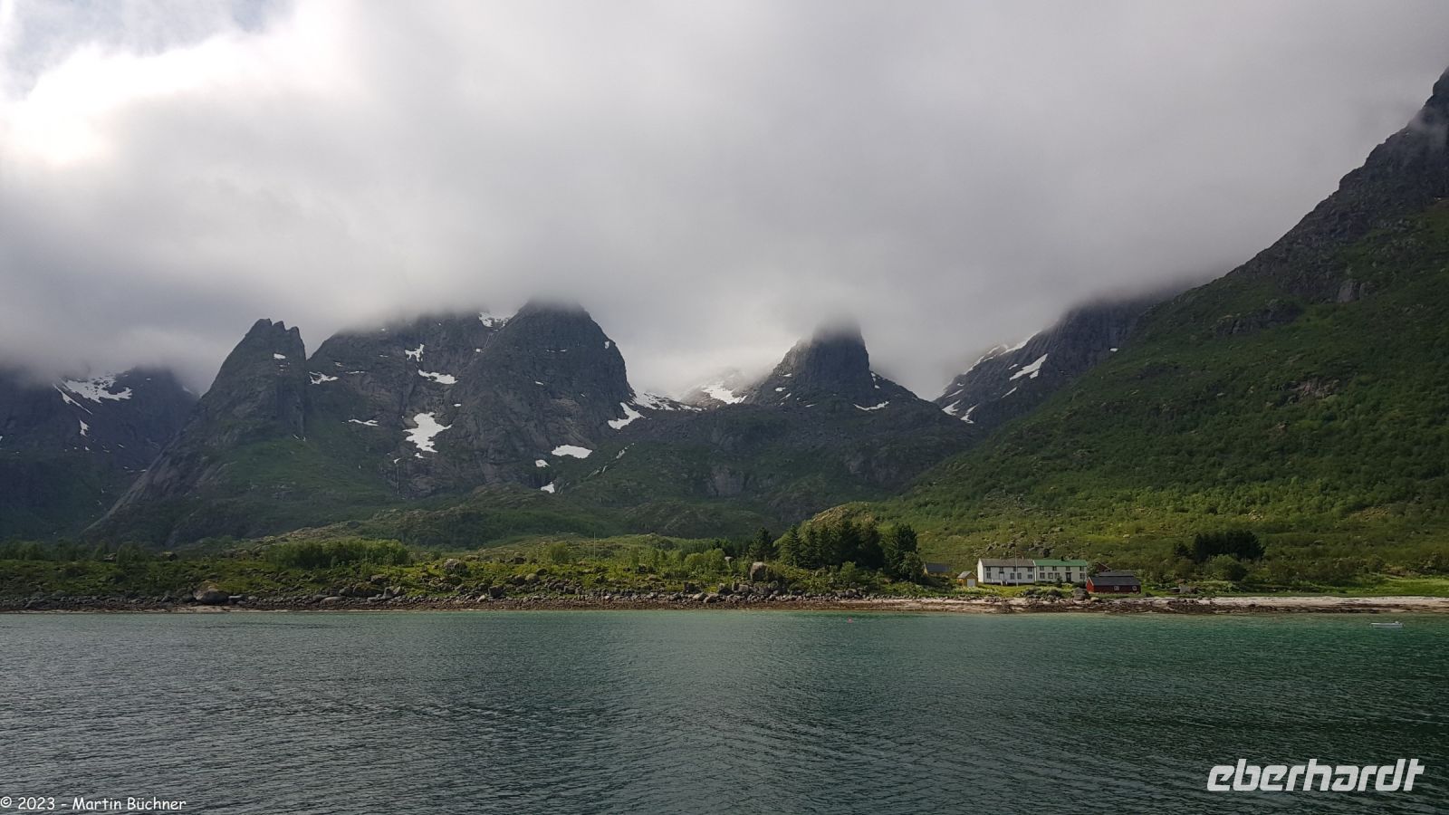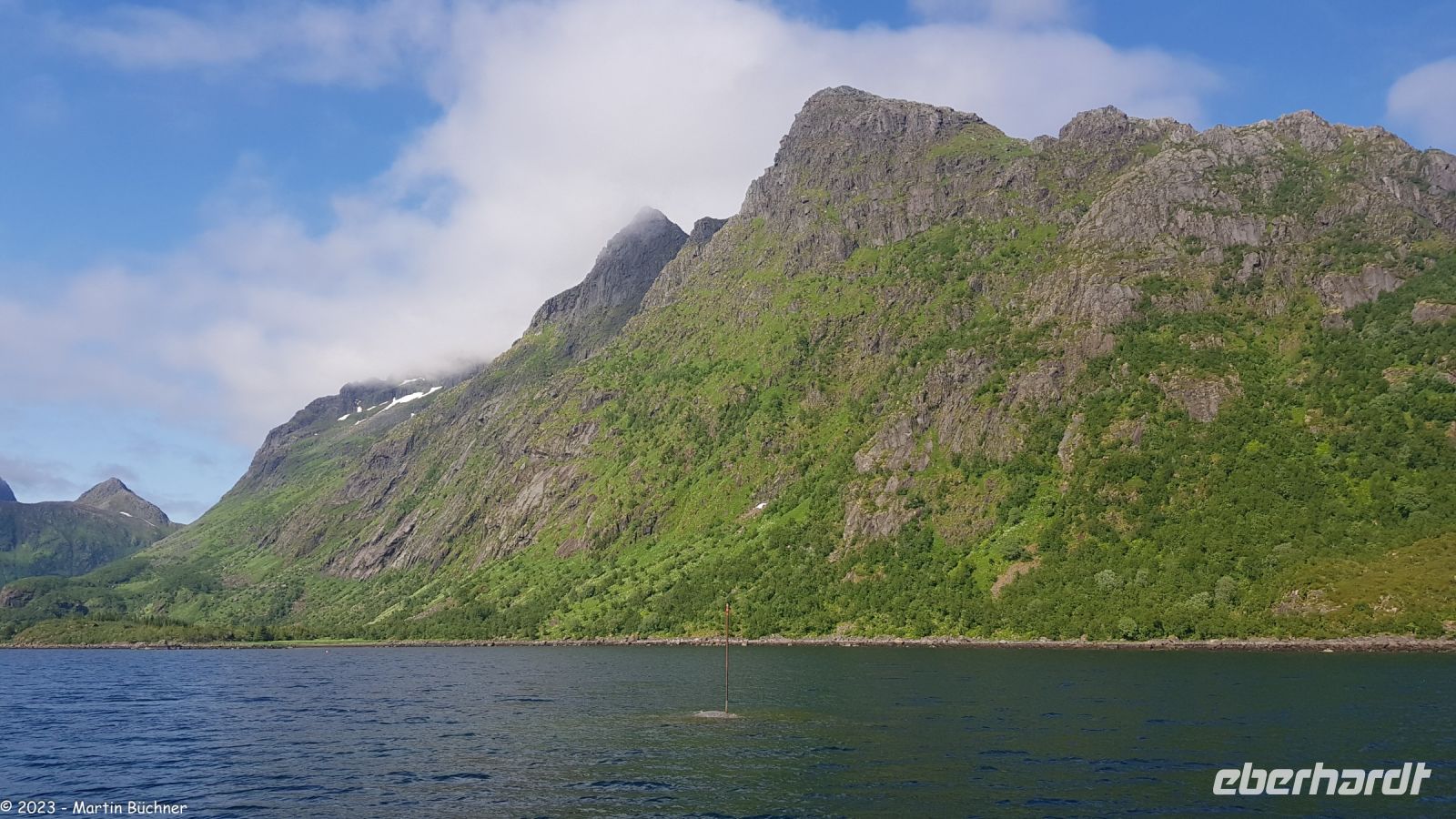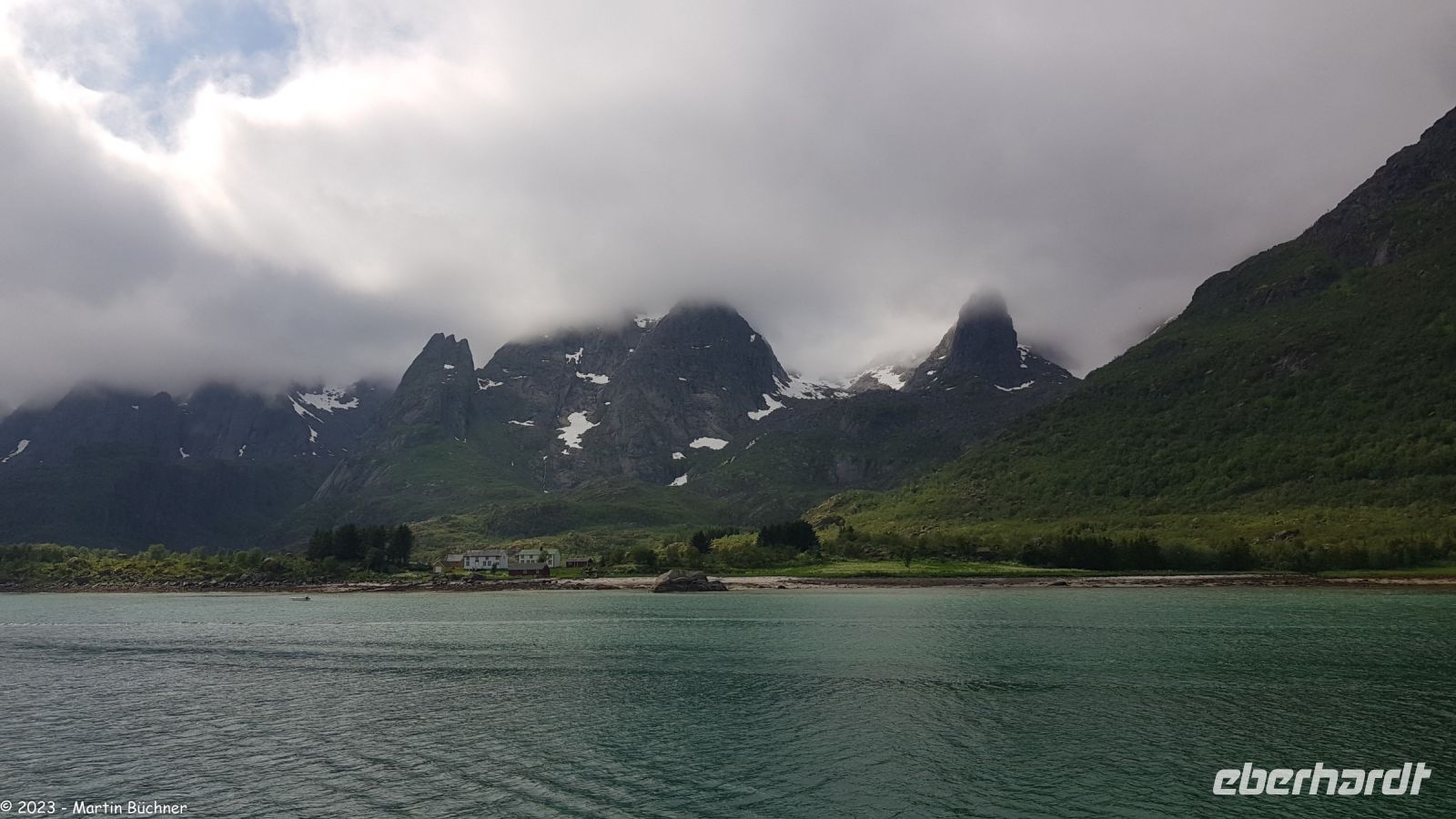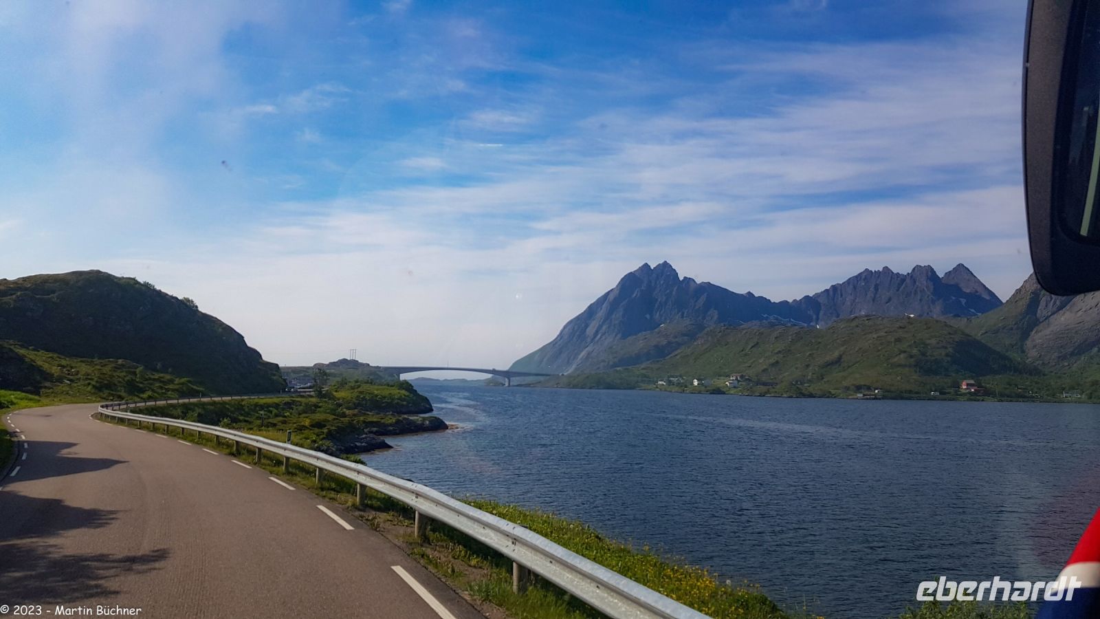 Wir erreichen die Inselgruppe der Vesterålen. Vom Festland trennt uns der Tjeldsund (lies: Schel-sünn), der wiederum durch die Tjeldsund Hängebrücke überwunden wird. Die Vesterålen sind der deutlich größere Teil der vorgelagerten Inselarchipele. Hier liegen auch die höchsten Berge, weit über 1.200 Meter ragen sie aus dem Ozean empor.