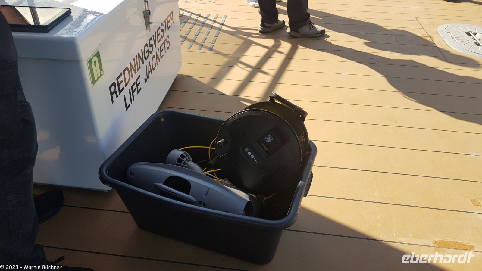 Man hat sogar eine Unterwasser-Drohne dabei, die uns die Unterwasserwelt der Lofoten näherbringt, live und in Echtzeit auf diversen Monitoren auf dem Schiff.