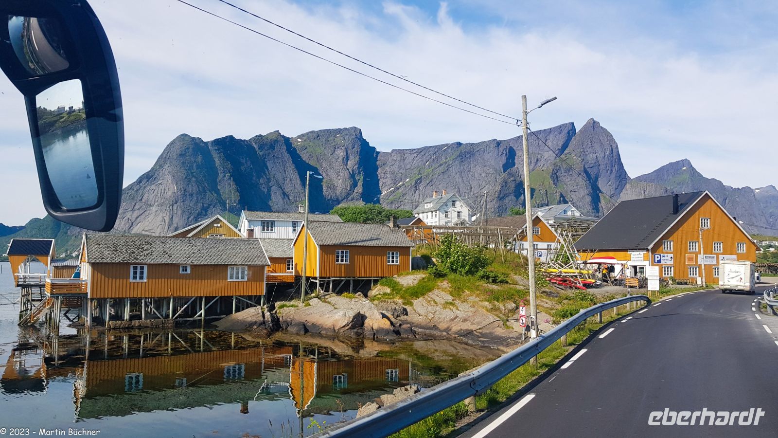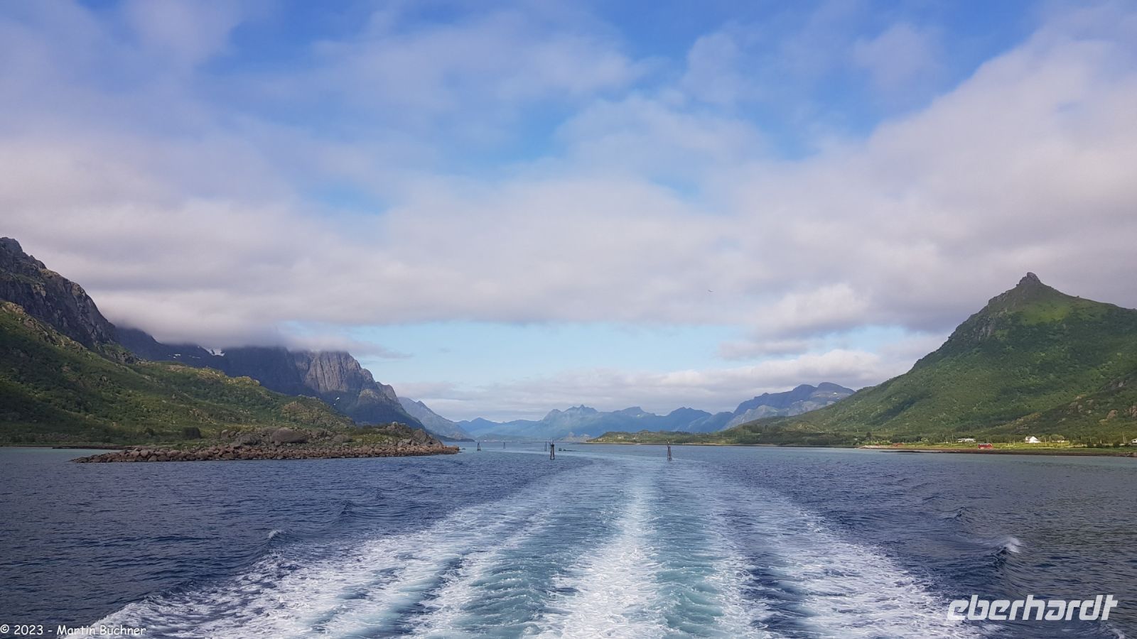 Höhepunkt ist Reine, der berühmteste Aussichtspunkt der Lofoten. Von Moskenes setzen wir mit der Fähre in fast 5 Stunden über den Vestfjord über. Mit jeder Minute beobachten wir, wie sich die berühmte Lofotenwand zu einer schier unüberwindbaren Mauer schließt.