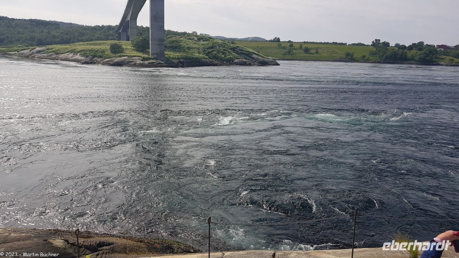 Steht man dort und beobachtet das fließende Wasser muss man sich bewusst machen, dass es das Meer ist, was vor dem Auge des Betrachters „fließt“. Es ist kein starker Fluss, es ist das Meer. Alle 6 Stunden wechselt die Fließrichtung des gewaltigen Stroms. Strudel können bis zu 10 - 30 Meter Durchmesser haben.