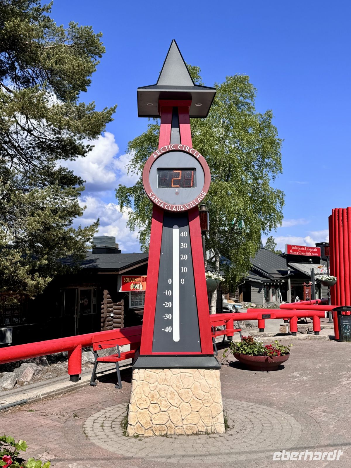 Heute setzen wir unseren Weg in Richtung einsamer Norden fort. Unser Ziel – die Überquerung des Polarkreises, ein Besuch beim Weihnachtsmann und die Suche nach den ersten Rentieren. Doch um diese Ziele zu erreichen, müssen wir heute erst einmal ein paar Kilometer Busfahrt hinter uns bringen. Die an uns vorbeiziehende finnische Landschaft lässt die Zeit aber wie im Flug vergehen und so erreichen wir um die Mittagszeit in Rovaniemi die magische Line, die den eisigen Norden vom Rest der Welt trennt. Gemeinsam begeben wir uns zu den lang ersehnten Koordinaten 66° 32‘ 35‘‘, stellen uns nebeneinander auf und überspringen mit einem yksi, kaksi, kolme Hand in Hand den nördlichen Polarkreis. Natürlich darf hierbei eine kleine Zeremonie und Polarkreistaufe nicht fehlen, die wir glücklich, mit dem Gedanken schon so weit gereist zu sein, genießen. Und wenn man es schon so weit geschafft hat, dann darf natürlich ein Besuch beim Weihnachtsmann nicht fehlen, der hier Tag ein, Tag aus mit seinem weißen Rauschebart die Menschen aus aller Welt willkommen heißt. Natürlich lassen wir es uns nicht nehmen diesen besonderen Besuch auf einem etwas überteuerten Foto festzuhalten. Aber wir wissen ja, dass auch der Weihnachtsmann allein vom Händeschütteln nicht leben kann. Dann noch schnell ein paar Postkarten geschrieben und schon geht es weiter und noch tiefer in den hohen Norden. Die Fahrt zum Hotel nutzen wir, um gemeinsam mit einem Glas Sekt auf die erfolgreiche Polarkreisüberquerung anzustoßen. Und weil auch dieser Tag so schön war dürfen wir uns bis zum Hotel über die ersten Rentiere freuen, die unseren Weg kreuzen. Es werden nicht die letzten sein. In unserem gemütlichen Hotel angekommen können wir den Abend dann noch in vollen Zügen genießen, denn für die nächsten Tage wird in diesen Breitengraden, in denen wir uns bewegen, die Sonne nachts nun erst einmal nicht mehr untergehen.