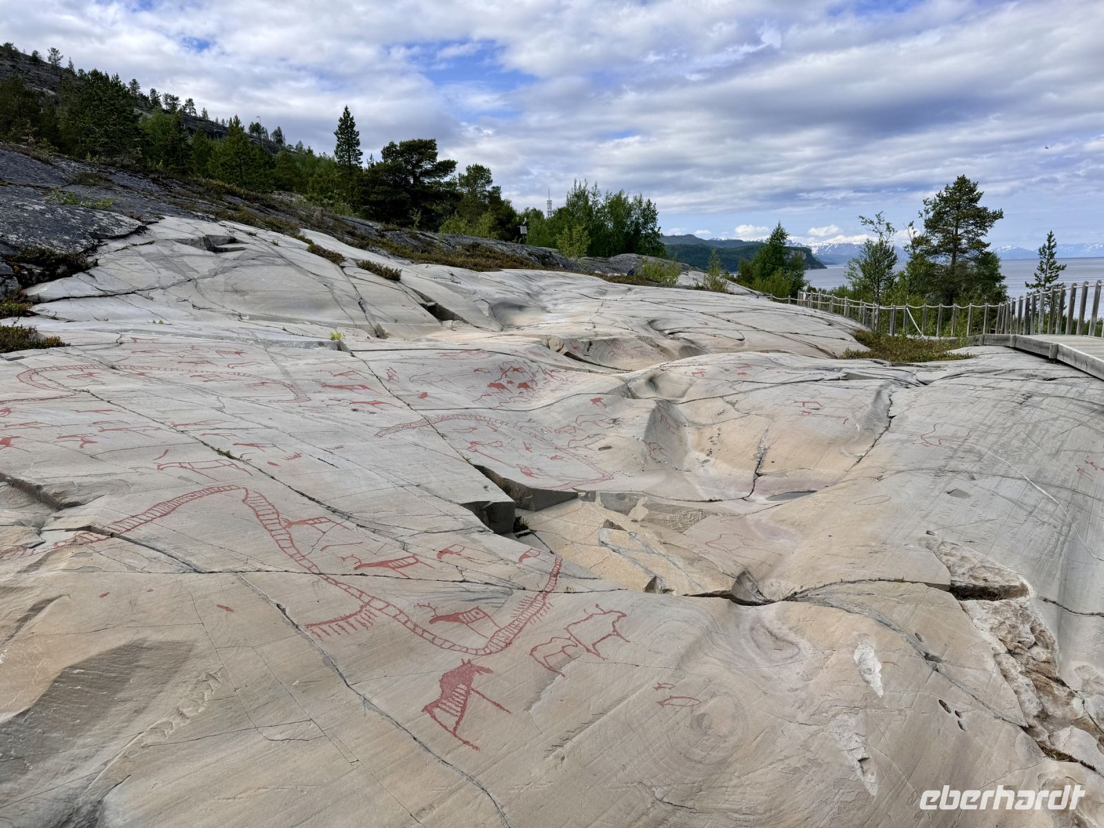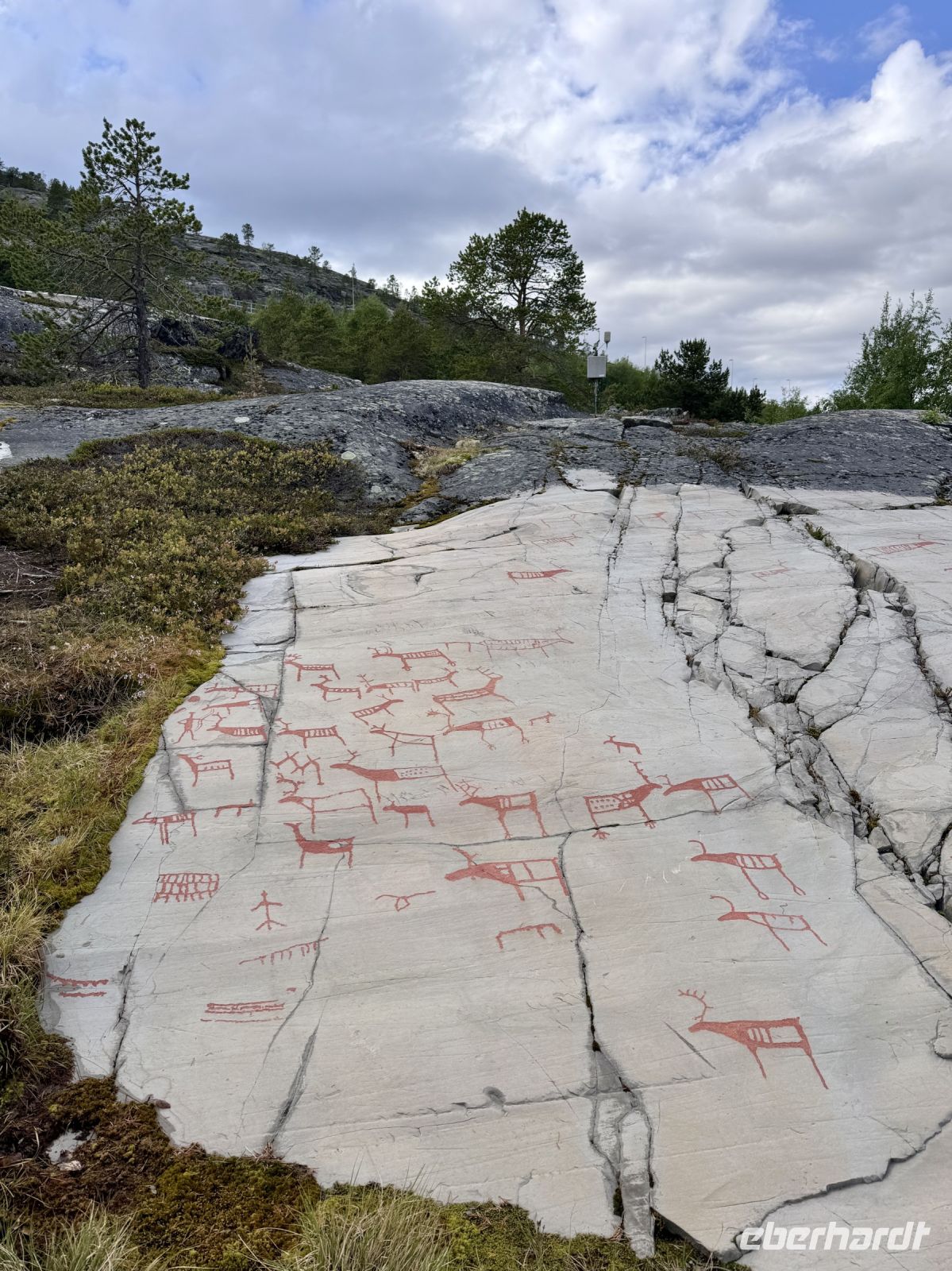 Die Nacht war kurz, aber für die gemachten Erlebnisse nehmen wir das gerne in Kauf. Am heutigen Tag schwingt ein bisschen Wehmut mit, sind wir uns doch alle darüber bewusst, dass es ab heute nur noch in eine Richtung geht, nämlich nach Süden. Aber natürlich heißt das nicht, dass unsere Reise hier schon ihr Ende findet – ganz im Gegenteil, denn es liegen noch weitere spannende Tage vor uns. Unsere Koffer sind schnell gepackt und so setzen wir unseren Weg am Morgen gemeinsam in Richtung Süden fort. Unser Weg führt uns über eindrucksvolle Hochebenen bis in die größte Stadt der norwegischen Finnmark nach Alta – Stadt des Nordlichts. Bekannt ist die die Stadt aber auch für die hier entdeckten Felszeichnungen, von denen die ältesten von vor rund 7000 Jahren stammen und die mittlerweile auf der UNESCO-Liste der weltweit schützenswerten Kulturgüter stehen. Bei einer spannenden Führung erhalten wir einen umfangreichen und spannenden Einblick in die Geschichte und Kultur der Sami. Der Weg zu den Steinzeichnungen ist wunderschön angelegt und bietet uns zudem immer wieder einen fantastischen Blick auf den nahegelegenen Altafjord. Nach diesem beeindruckenden Erlebnis setzten wir unser Fahrt in Richtung Hotel fort, die uns entlang unzähliger malerischer Fjorde in Nordnorwegen führt. Natürlich legen wir hier und da einen Stopp ein um die einmalige Landschaft mit unseren Kameras einzufangen. Am Abend erreichen unser familiengeführtes und uriges Hotel in Oteren, in dem wir nicht nur köstlich bewirtet werden, sondern auch eine geruhsame Nacht verbringen, bevor am nächsten Morgen der Wecker für unser nächstes Abenteuer klingelt.
