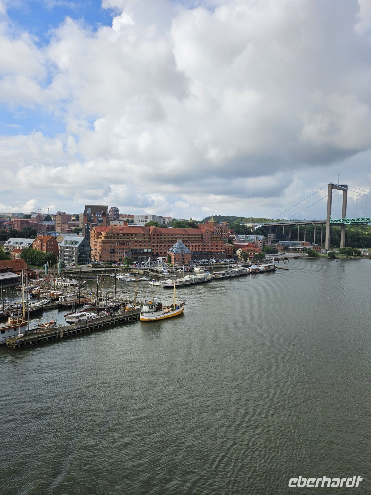 Von Sundsvall geht es am Morgen los in Richtung der Höga Kusten (Hohe Küste). Vorher genießen wir aber noch den herrlichen Ausblick über Sundsvall vom Aussichtstum auf dem Norra Berget. Das erste Etappenziel heute ist die Högakustenbrun, das zweitgrößte Bauwerk Schwedens. Die Hängebrücke hat ähnliche Ausmaße, wie die Golden-Gate-Bridge in San Francisco und befindet sich mitten im UNESCO-Weltnaturerbe. Das Land hier hat nämlich eine besondere Eigenart: nach dem Abschmelzen der riesigen Eisschicht der Eiszeit hebt sich das Land bis heute. 285m sind es bereits und jedes Jahr kommen weitere 8mm dazu.