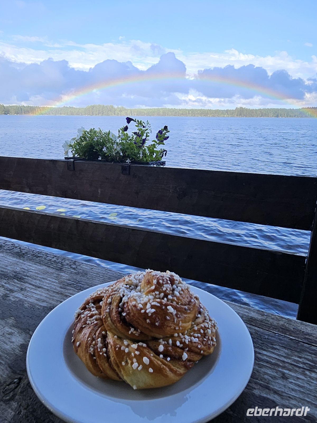 Nach einem gemütlichen Frühstück, fahren wir nur wenige Minuten zum Stadtzentrum, wo wir auf unsere Stadtführerin Benedikta treffen. Sie zeigt uns zuerst das Stockholmer Rathaus und erklärt die Geschichte und die Bedeutung des prächtigen Baus für alle Stockholmer. Weiter geht es mit einer Stadtrundfahrt über Teile der 14 Inseln, auf denen Stockholm errichtet wurde. Ein Besuch des Vasa-Museum raubt uns dann allen den Atem. Das riesige Schiff, das 1628 gebaut wurde (als völlige Fehlkonstruktion, wie wir lernen) wurde nach über 333 Jahren in einer spektakulären Bergungsmission ans Licht gebracht und zu 95% aus Originalteilen wieder aufgebaut. Im Anschluss geht es weiter in die Altstadt "Gamla Stan", wo uns Benedikta mit einigen Restaurant- und Café-Empfehlungen wieder verlässt. Wir genießen noch etwas Freizeit, ehe wir uns von unserem Busfahrer Jens verabschieden müssen. Der fliegt nämlich von Stockholm wieder nach Hause. Ab sofort wird Daniel das Steuer übernehmen und uns sicher ans Nordkap und zurück bringen. Weiter geht es durch die endlosen Schwedischen Wälder und an vielen Seen vorbei. An einem See am Rasthof Tre Änger machen wir einen Stopp und der herrliche Regenbogen, der sich direkt über dem See abzeichnet, ist wohl ein Zeichen für das viele Glück und die wunderbaren Momente, die uns auf diese Reise noch bevorstehen. Wir lassen uns unsere erste Zimtschnecke (Kanelbullar) schmecken und schauen dem Farbenspiel des Regenbogens zu, der erst bei unserer Abfahrt so langsam wieder verschwindet. Unser Hotel in Sundsvall erwartet uns bereits!