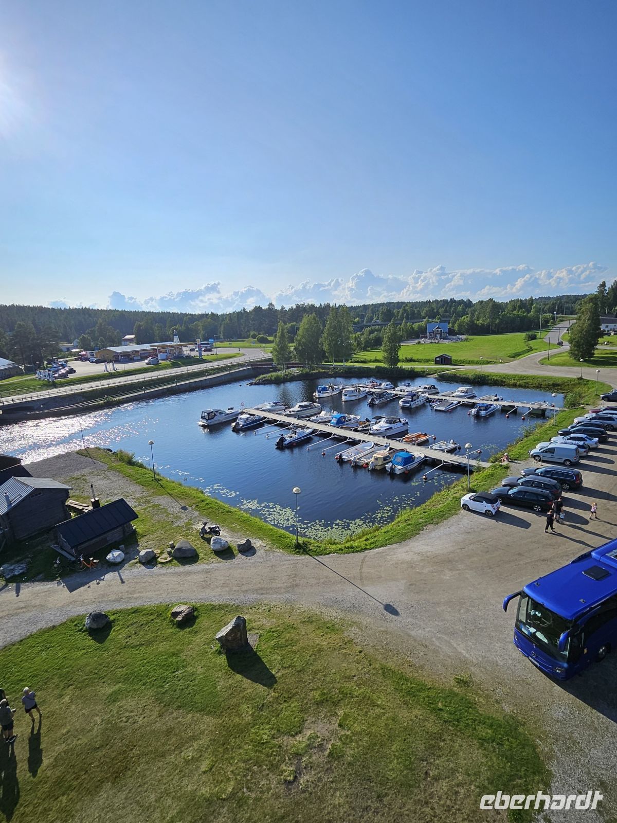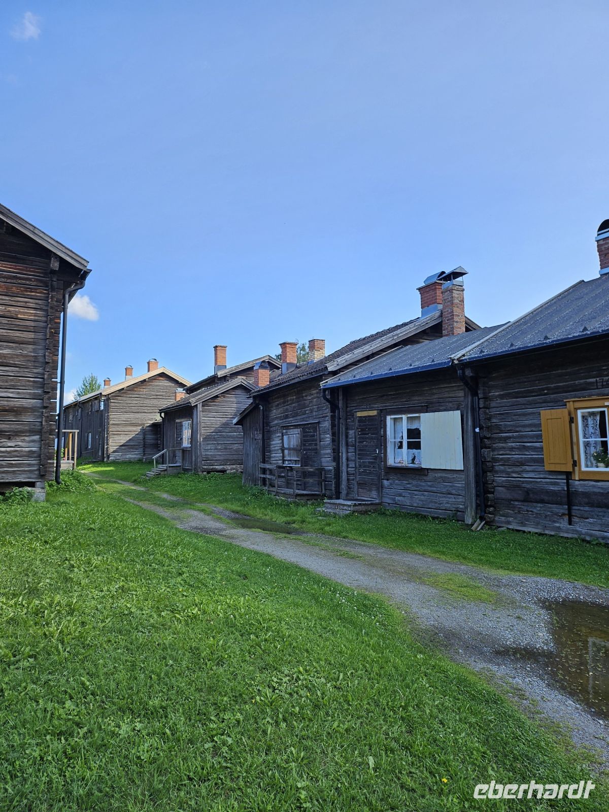 Nach einer kurzen Rast an einer alten Eisenfabrik „Olofsfors Bruk“ (viel malerischer als es klingt), geht es vorbei an vielen Seen weiter zur alten Kirchenstadt Bonnstan aus dem 17. Jahrhundert. Was anmutet wie ein Filmkulisse, war ursprünglich zur Erfüllung der "Kirchgangspflicht" gedacht. Denn das dünn besiedelte Schweden hatte längst nicht überall Kirchen, sodass auch die Wege von Haus und Hof zur nächsten Kirche durchaus ein oder mehre Reisetage erforderten. Also baute man Unterkünfte, die wir uns noch heute anschauen können. Ein netter Eigentümer öffnete uns sogar die Tür zu seinem Häuschen und erklärte uns viele interessante Fakten zur Geschichte der Kirchstadt. Der letzte Stopp ist der schöne Leuchtturm von Jävre, auf den wir steigen und uns durch die winzige Luke zur Aussichtsplattform quetschen. Belohnt werden wir mit einem herrlichen Blick. Am frühen Abend erreichen wir dann die schöne Stadt Luleå am bottnischen Meerbusen, wo uns ein 3-Gänge-Menü erwartet.