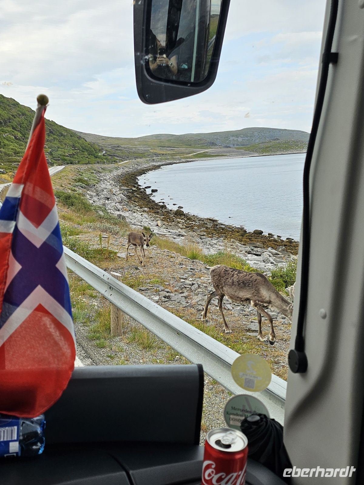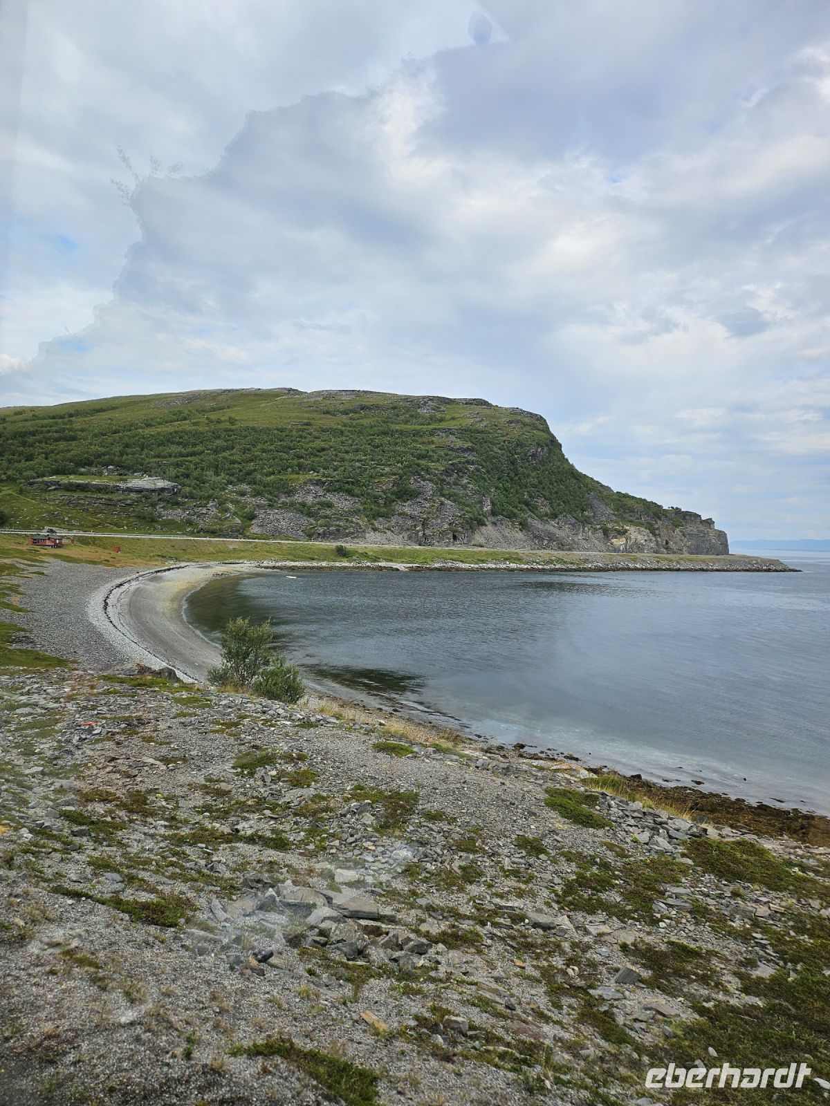 Zunächst aber bestaunen wir unseren ersten Fjord, den Porsangerfjord. 121 km ist er lang, bis zu 20 km breit. Nach all den Wäldern, Seen und Feldern aus Schweden und Finnland, ist dies nun nochmal ein besonderer Anblick. Die Landschaft scheint sich nun minütlich zu ändern, wird rauer und gewaltiger. Norwegen hat uns bereits jetzt in seinem Bann.