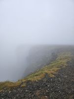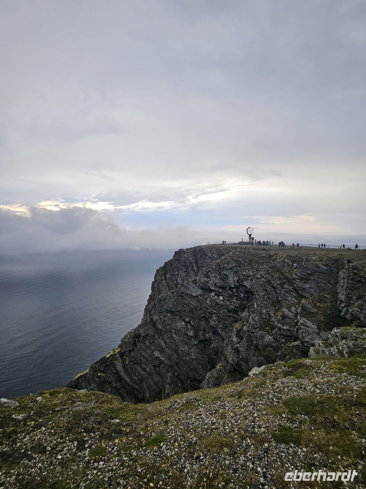 Trotzdem lassen wir es uns um 0 Uhr nicht nehmen im dichten Nebel unter der Nordkap-Kugel mit Sekt anzustoßen! Ist das nicht passend, so mysteriös im Zwielicht der Mitternachtssonne am Ende der Welt?! Als stünde man mitten im Himmel.