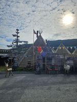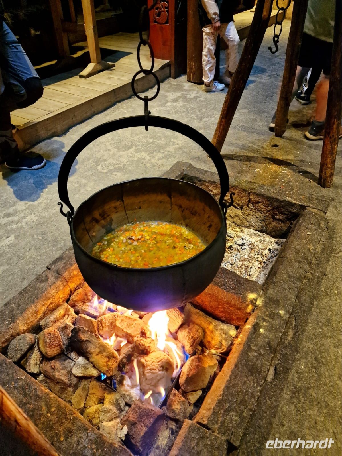Zurück an Land folgen wir dem Ruf der Wikinger, denn sie haben schließlich für uns gekocht. Im Loftr-Museum befindet sich der Nachbau des größten Langhauses der gesamten Wikingerzeit. Während wir im Festsaal Platz nehmen und leckeren Schafseintopf serviert bekommen, erzählt uns eine Museumsmitarbeiterin vom Leben zur Zeit der alten Nordmänner, denn Wikinger waren nur die "Eroberer" und sie waren eher der kleinere Teil des historischen Volkes. Wir erhalten Einblicke in die Welt der Häuptlinge, wie man in so einem Langhaus zusammenlebte und räumen auf mit den ganzen falschen Mythen, die sich um das Volk ranken. Staunend entdecken wir im Anschluss dieses Museum zum Anfassen noch auf eigene Faust, ehe es im wieder zum Hotel geht. Der Regen stört uns dabei nicht, denn es ist ausruhen angesagt.