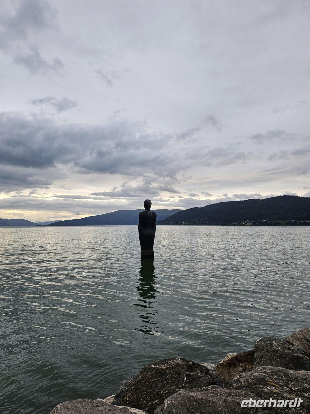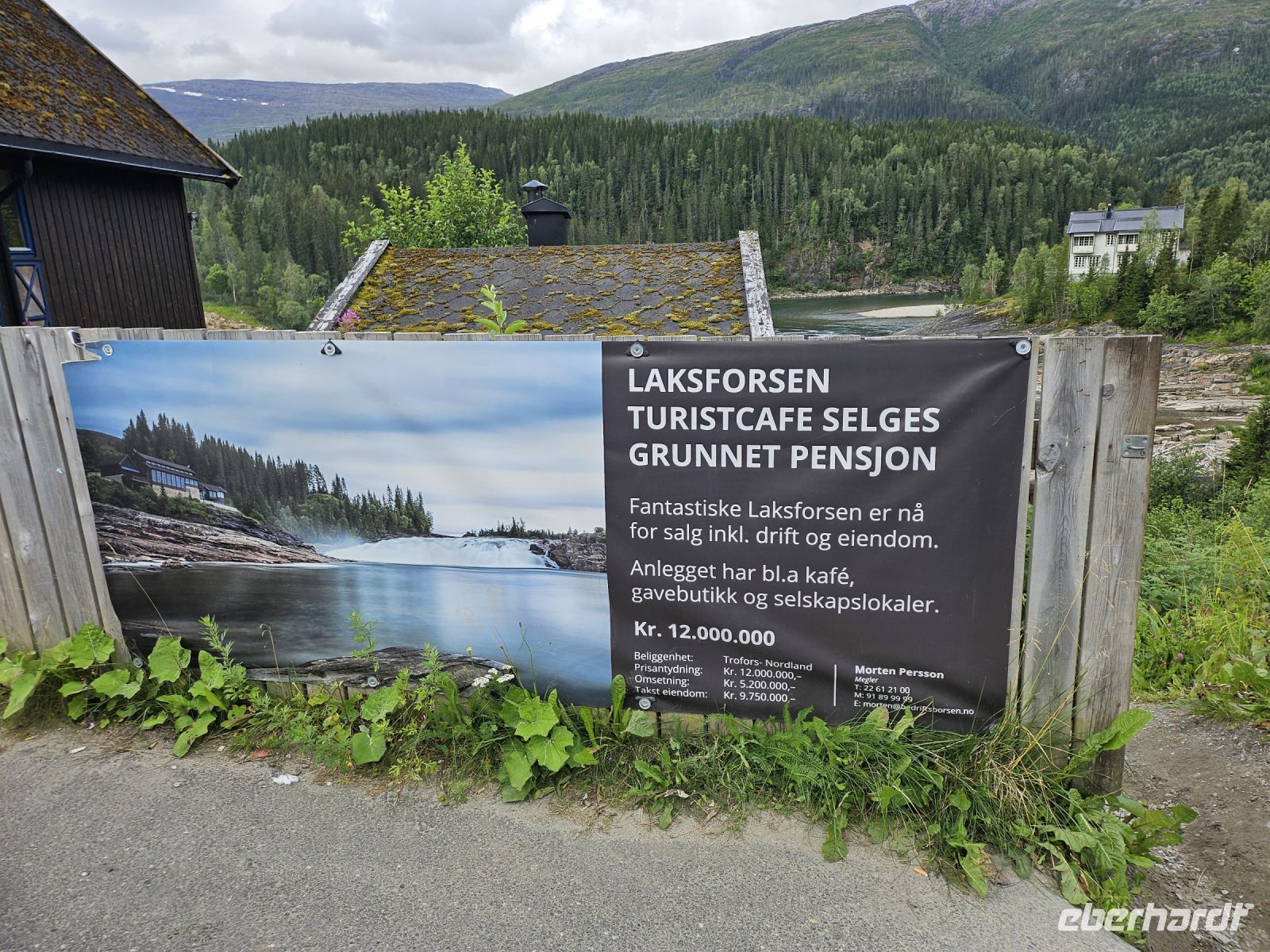 Nach einem ebenso üppigen Frühstück, wie auch das Abendessen, starten wir am Morgen gut erholt. Vor uns liegen 500km auf denen wir als erstes den Larksfossen, einen mächtigen Wasserfall mit Lachstreppe passieren. Das "zu-verkaufen-Schild" am Café lässt uns bei dieser Schönheit ganz kurz über eine mögliche Auswanderung und überraschend günstige Häuserpreise sprechen, ehe wir weiterziehen und das Portal des Nordlands durchschreiten. Wir haben nun offiziell den hohen Norden verlassen und befinden uns ab jetzt in der Region Trøndelag. Als nächstes wird es Zeit für etwas Geschichte und Kultur. Wir halten im Kulturzentrum von Stiklestad. Hier starb in einer Schlacht um 1030 der berühmte König Olav II., später als Olav der Heilige bekannt. Er führte die norwegischen Stämme zusammen und trieb die Christianisierung voran. Noch heute feiert man ihn als Begründer des Norwegens, so wie wir es heute kennen. Wir besuchen die Kirche, die über dem Stein gebaut wurde, an dem er sein Leben verlor und schauen uns das schön angelegte Freigelände an, ehe wir den letzten großen Sprung nach Trondheim wagen.