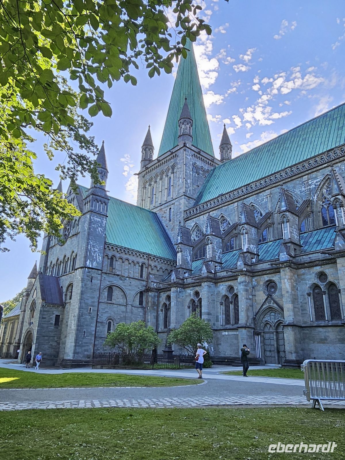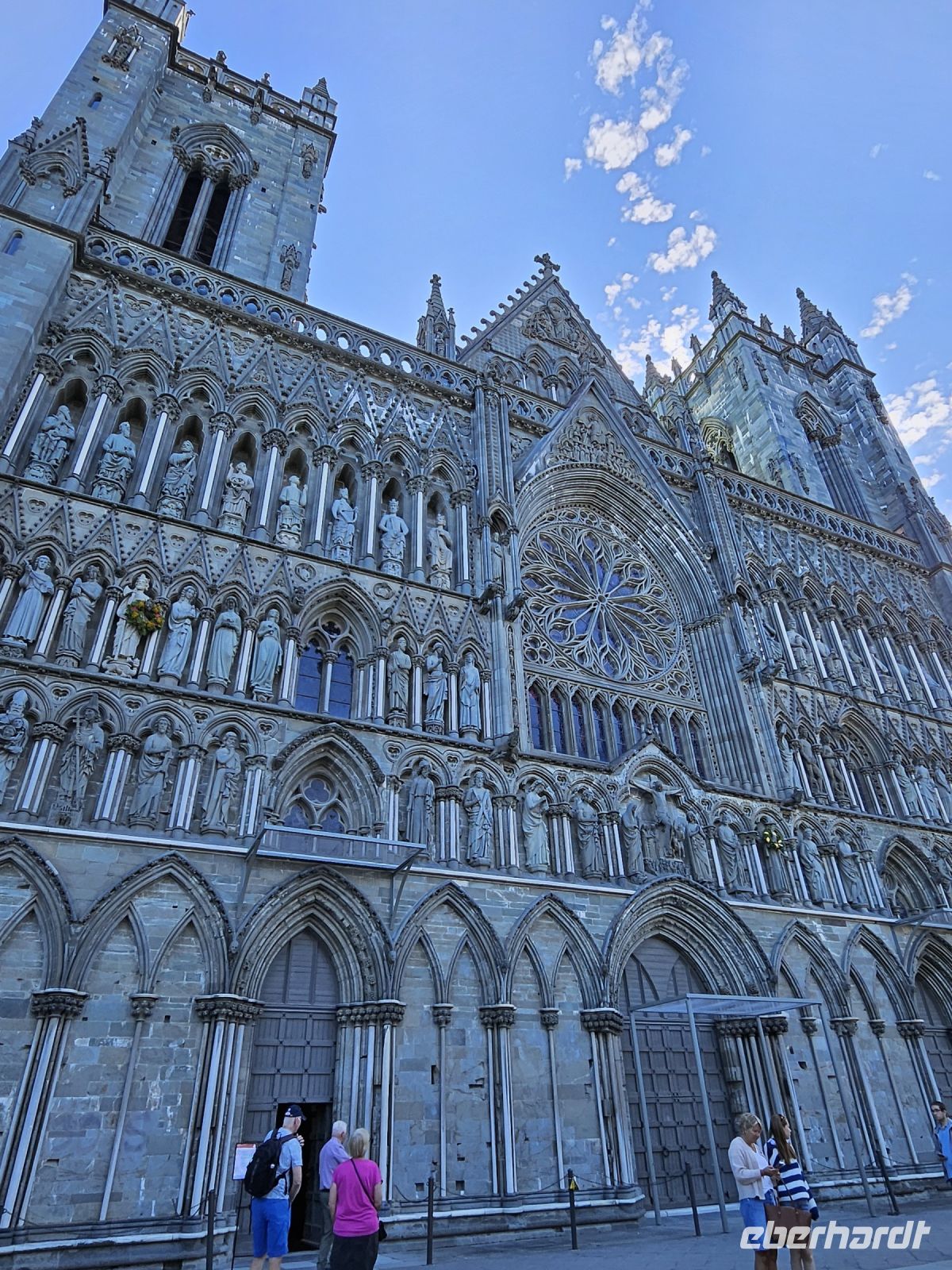 Wir starten den Tag mit einem reichhaltigen Frühstück und fahren 5 Minuten in die Innenstadt nach Trondheim, denn der Vormittag gehört der ersten Hauptstadt Norwegens. Dank unseres morgendlichen Besuchs haben wir die Stadt für uns und erleben, wie sie ganz langsam lebendig wird. Die Sonne strahlt und die Häuser spiegeln sich im Wasser. Der Anblick gleicht dem jeder Postkarte, die wir hier entdecken. Wir besuchen das Nationalheiligtum, dem Nidarosdom und sind überwältigt von der Größe. Als Krönungs- und Grabeskirche des Heiligen Olavs II. ist der Nidarosdom von enormer Bedeutung für das Königreich Norwegen. Und was für ein Glück für uns, dass während unseres Besuchs das Olavsfest und noch ein Streetfood-Festival in der Innenstadt stattfinden. Es gibt viel zu sehen und zu erkunden, ehe es weiter in Richtung Süden geht.