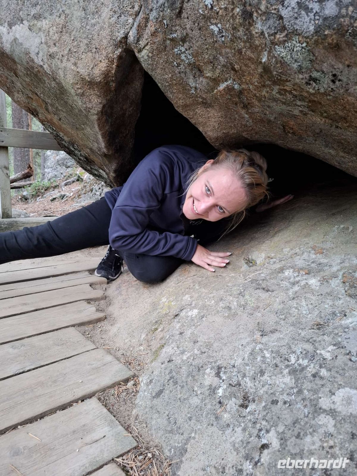 Etwas Aufregung liegt bereits am Morgen in der Luft, denn uns ist allen klar: Heute ist es soweit! Das Nordkap ruft! Und der Wetterbericht lässt nichts gutes vermuten...es ist Regen angesagt. Egal, denn jetzt gibt es kein Halten mehr, bis auf unserer wunderschönen Stopps entlang der Route. Wir beginnen an der Bärenhöhle und steigen die 468 Stufen auf den Aussichtspunkt hoch. Der Morgensport tut uns gut und wir krabbeln, einer nach dem anderen, auch in die Höhle hinein, um uns das Waben-ähnliche Gestein anzuschauen. Zum Glück bleibt keiner in dem engen Loch stecken und wir setzen unsere Reise fort und verlassen Finnland. Norge hjerte mitt!- Norwegen, mein Herz, da bist du ja. Endlich können wir unsere bisher erlernten Norwegisch-Kenntnisse, die Reiseleiterin Mariele nicht müde wird zu vermitteln, einsetzen.