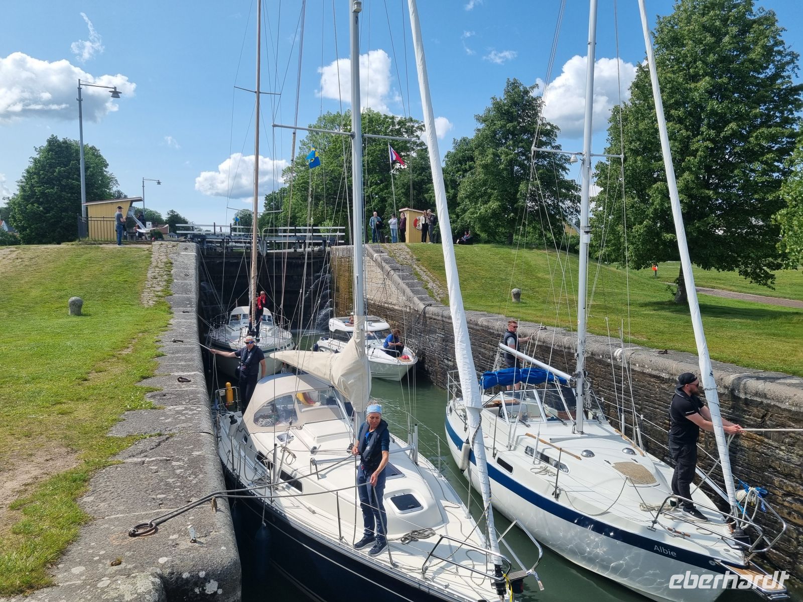 Gut erholt und voller Erwartungen genossen wir am Morgen die eindrucksvolle Einfahrt durch den imposanten Schärengarten westlich von Göteborg. Pünktlich um 9:15 Uhr legte unser Fährschiff in Göteborg an. Unser Bus samt Chauffeur Daniel stand bereits bereit, sodass wir zügig starten konnten. Unsere Route führte uns quer durch Göteborg hinaus in die sommerliche Landschaft Südschwedens. Das Wetter zeigte sich von seiner besten Seite, was uns ermöglichte, unterwegs einige interessante Pausen einzulegen – unter anderem in der Nähe von Gränna am Vätternsee. Dieser Ort ist berühmt für seine Zuckerstangen, die in Schweden „Polkagris“ heißen. Erfunden wurden sie Mitte des 19. Jahrhunderts von Amalia Erikson, die hier die erste Zuckerstangenbäckerei eröffnete. Weiter ging es nach Linköping, von wo aus wir einen lohnenswerten Abstecher ins benachbarte Berg unternahmen. Am westlichen Ufer des Roxen-Sees gelegen, ist der Ort vor allem durch seine Schleusenanlage, die „Bergs slussar“, bekannt. Heute war dort einiges los – wir hatten das Glück, eine Schleusung live mitzuerleben. Die Anlage umfasst sieben Schleusen sowie zwei Doppelschleusen und ermöglicht es den Schiffen, einen Höhenunterschied von fast 19 Metern zu überwinden – ein wirklich beeindruckendes Schauspiel. Von Berg aus waren es nur noch etwa 200 Kilometer bis in die schwedische Hauptstadt Stockholm. Allerdings brauchten wir viel Geduld, denn etwa eine Stunde standen wir im Stau bei der Einfahrt nach Stockholm! Am Abend erreichten wir schließlich unser Hotel – das Quality Hotel Strawberry Arena in Solna, nordwestlich des Stadtzentrums. Zum Abschluss des Tages hieß es Abschied nehmen: Unser Fahrer Daniel, der uns die letzten beiden Tage begleitet hatte, wurde ab morgen von Sergey abgelöst, der von nun an das Steuer übernahm.