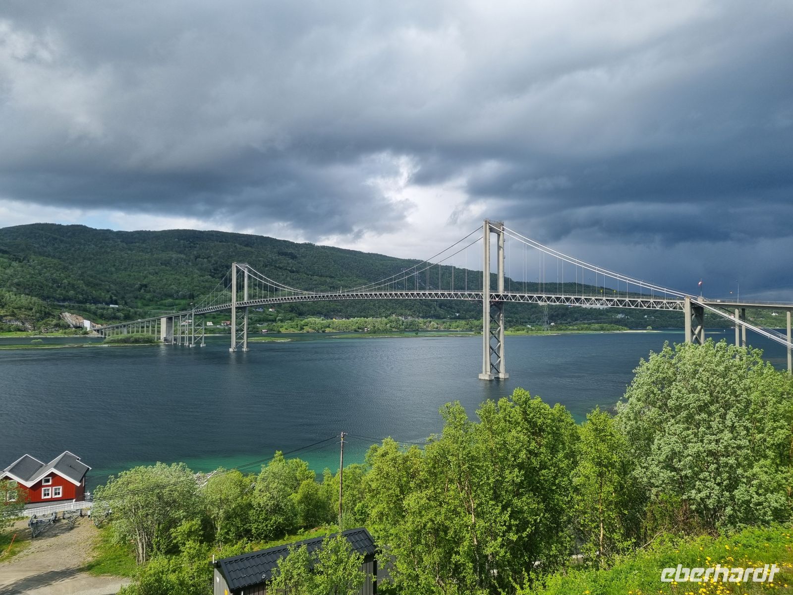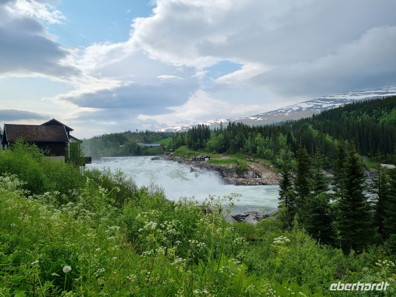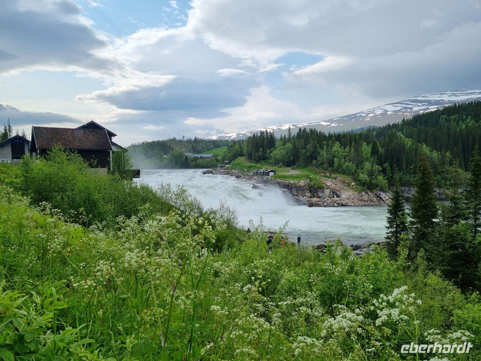 Nach einer erholsamen Nacht in Mo i Rana, nur etwa 80 Kilometer südlich des Polarkreises, machten wir uns frühmorgens auf den Weg Richtung Süden. Unser Ziel: Trondheim, die alte Krönungsstadt der norwegischen Könige. Doch der Weg dorthin war mehr als nur eine Strecke – er war ein Erlebnis voller Natur, Geschichte und beeindruckender Eindrücke. Unser erster Halt war am Laksforsen, einem der eindrucksvollsten Wasserfälle entlang der E6. Mit einer Fallhöhe von rund 17 Metern und einer gewaltigen Wassermenge, die sich über breite Felsen ergießt, ist dieser Ort ein echtes Naturspektakel. In den Sommermonaten kann man hier oft Lachse beobachten, wie sie gegen die Strömung anspringen – ein faszinierender Anblick! Die Straße führte uns weiter durch das wunderschöne Namdalen, eine eher unbekannte, aber beeindruckend grüne und ruhige Region. Wälder, Seen und weite Täler begleiteten uns kilometerlang, immer wieder unterbrochen von kleinen Siedlungen und einsamen Bauernhöfen. Wer Norwegen in seiner ursprünglichen Form erleben möchte, ist hier genau richtig. Am frühen Nachmittag erreichten wir Stiklestad, einen geschichtsträchtigen Ort, der tief in der norwegischen Identität verankert ist. Hier fand im Jahr 1030 die berühmte Schlacht von Stiklestad statt, in der König Olav der Heilige fiel. Heute erinnert ein beeindruckendes Kulturzentrum mit Freilichtmuseum und Kirche an dieses Ereignis. Der Besuch war wie eine kurze Zeitreise – und zugleich eine spannende Lektion über den Übergang Norwegens vom Heidentum zum Christentum. Am Abend erreichten wir schließlich Trondheim – müde, aber voller Eindrücke. Die Stadt begrüßte uns mit ihrem ganz eigenen Flair, irgendwo zwischen modern und historisch, lebendig und gelassen.