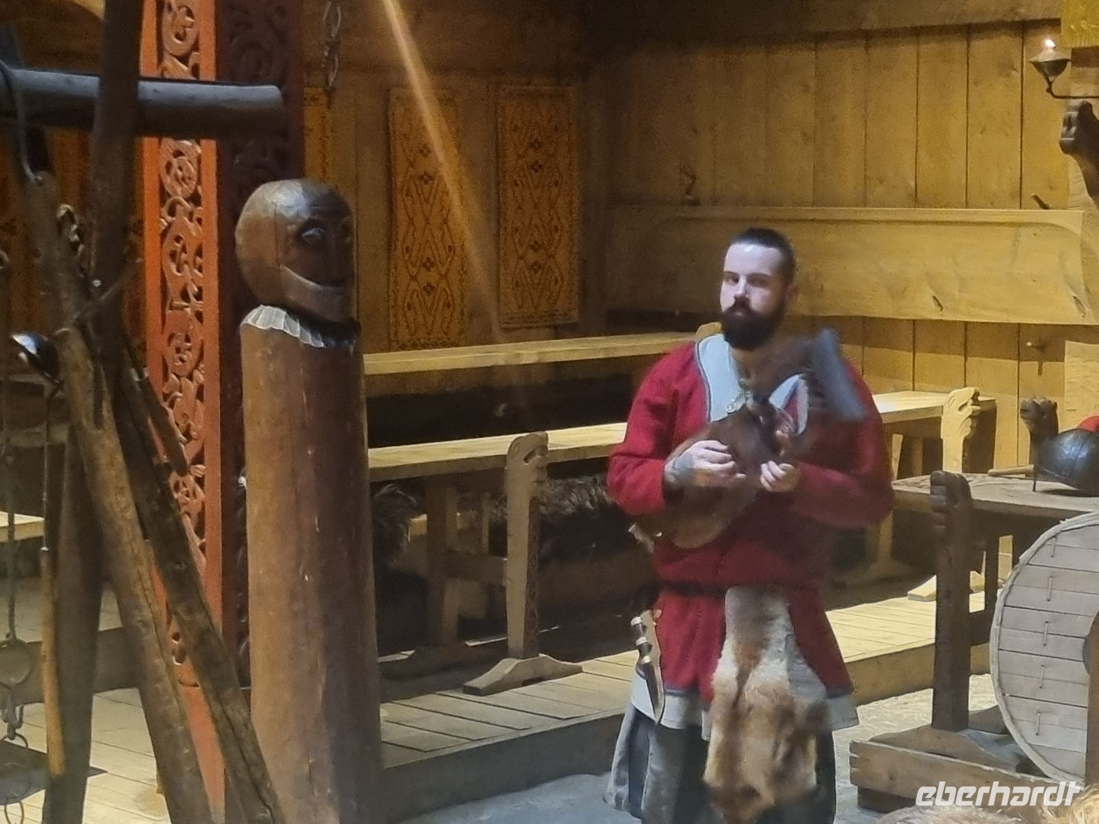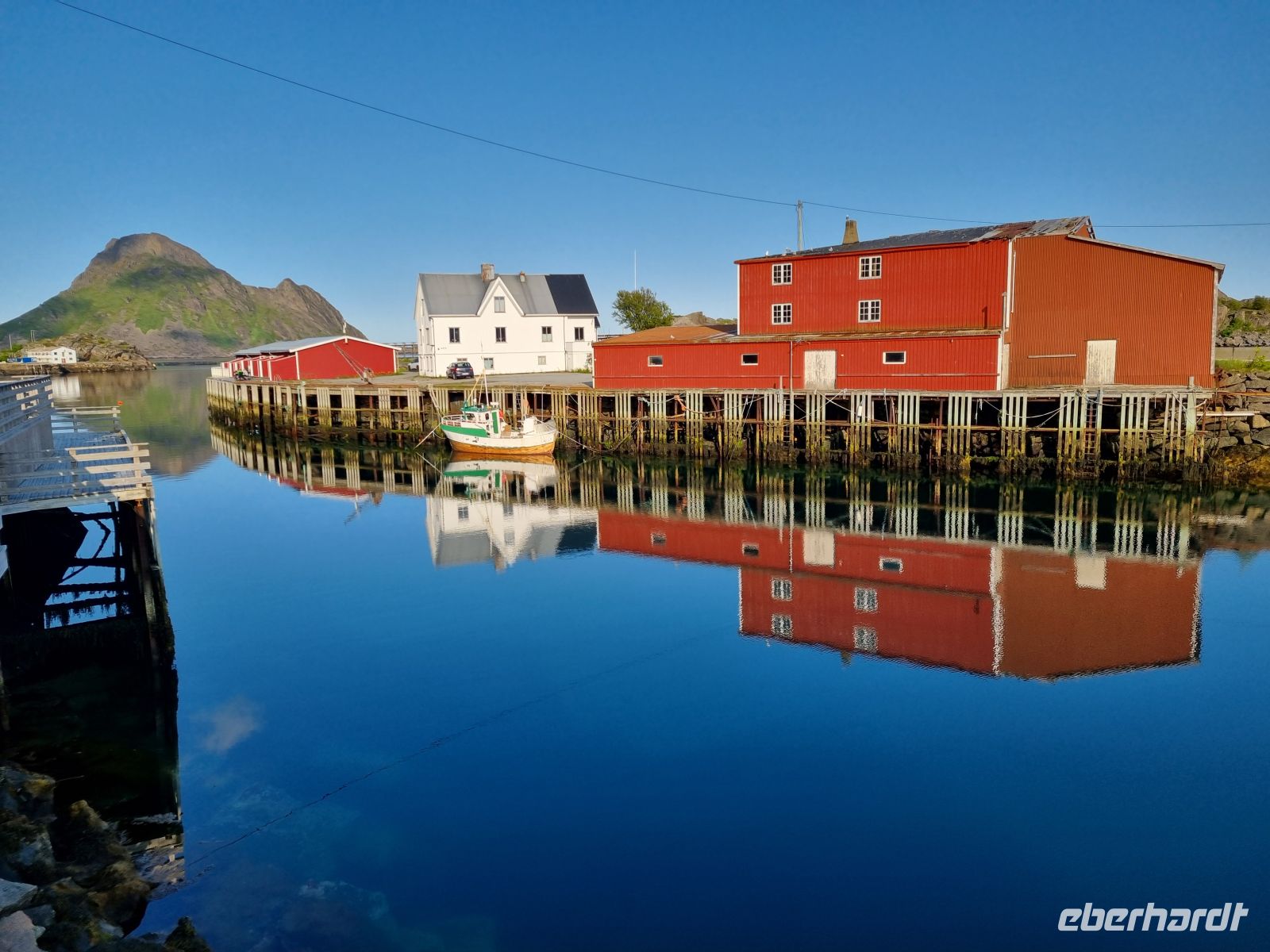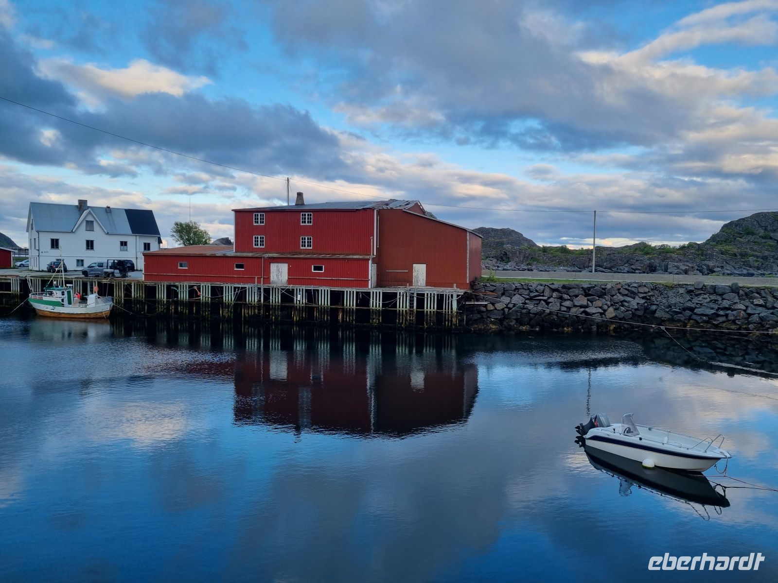 Nach einer wunderbar ruhigen Nacht in unseren gemütlichen Rorbu-Hütten direkt am Wasser in Mortsund starteten wir früh in einen neuen, erlebnisreichen Tag – mit der angenehmen Aussicht, am Abend wieder genau hierher zurückzukehren. Unser erster Stopp des Tages führte uns in das nahegelegene Svolvær. Auf dem Weg dorthin legten wir einen kurzen Fotostopp an der imposanten Lofotenkathedrale in Kabelvåg ein. Die größte Holzkirche nördlich von Trondheim beeindruckte durch ihre klare Architektur und die majestätische Lage vor der dramatischen Bergkulisse – ein echter Hingucker am frühen Morgen. In Svolvær erwartete uns das nächste Highlight: Eine rund dreistündige Fahrt mit einem modernen Hybridschiff durch den südlichen Raftsund bis zum legendären Trollfjord. Bei traumhaftem Wetter – spiegelglattes Wasser, Sonne und klare Sicht – glitt das Schiff fast lautlos durch die beeindruckende Fjordlandschaft. Der Trollfjord selbst, mit seinen steil aufragenden Felswänden und dem schmalen Eingang, wirkte fast unwirklich – wie aus einer nordischen Sage entsprungen. Ein besonderer Moment war die Sichtung mehrerer Seeadler, die majestätisch über dem Fjord kreisten. Mit etwas Glück konnten wir beobachten, wie einer der Adler dicht über dem Wasser seine Kreise zog – ein Naturschauspiel, das wir so schnell nicht vergessen werden. Am Nachmittag stand der Besuch des Wikingermuseums in Borg auf dem Programm. In der originalgetreu rekonstruierten Langhalle tauchten wir tief in das Leben der Wikinger ein. Besonders stimmungsvoll: Das rustikale Mittagessen mit echter Wikingersuppe, serviert in rustikalem Geschirr – ein Erlebnis für alle Sinne. Den perfekten Abschluss bildeten zwei der schönsten Strände der Lofoten: Vik und Haukland. Beide beeindruckten mit feinem, weißem Sand, türkisfarbenem Wasser und einer Ruhe, die fast unwirklich schien. Wer hätte gedacht, dass solch karibische Eindrücke so weit im Norden möglich sind?