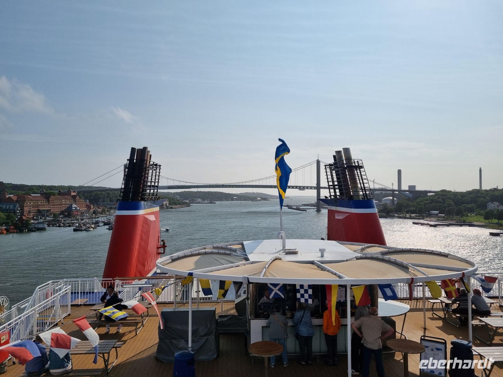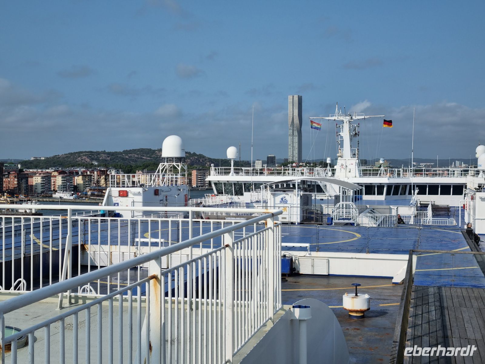 Ebenfalls besonders eindrucksvoll wirkte der berühmte „Trotzkopf“, ein kleiner Junge im Wutanfall, der nicht nur Kindererziehung, sondern auch unseren inneren Dickkopf humorvoll widerspiegelt. Nach etwas Freizeit an der modernen Oper, die mit ihrer Architektur an einen treibenden Eisberg erinnert, hieß es Abschied nehmen. Unser Bus rollte weiter Richtung schwedischer Grenze. Kurz vor der Grenze hielten wir ein letztes Mal an: Mit einem Glas Sekt stießen wir auf unsere gemeinsame Reise an – begleitet von einem humorvollen Gedicht, das Stationen, Emotionen und lustige Momente liebevoll Revue passieren ließ. Es wurde gelacht, genickt, geschmunzelt – und vielleicht auch ein wenig wehmütig geschwiegen. Am frühen Abend erreichten wir den Hafen von Göteborg, wo unsere Fähre, diesmal die „Stena Scandinavica “, schon zum Einstieg bereitlag. Nach dem Check-in genossen wir ein köstliches Abendessen an Bord – ein letzter kulinarischer Höhepunkt. Während das Schiff langsam aus dem Hafen glitt und wir auf das offene Meer hinaussahen, begannen wir, unsere Reise innerlich abzuschließen. Die letzte Nacht unserer Reise begann zwar mit etwas Seegang – das Meer war unruhig, und das sanfte Schaukeln der „Stena Scandinavica“ war deutlich zu spüren. Für einige ein kleines Abenteuer, für andere eine Einladung zur frühzeitigen Bettruhe. Zum Glück beruhigte sich das Wasser in der Nacht, und so fanden die meisten doch noch erholsamen Schlaf, bevor uns am nächsten Morgen die deutsche Küste wieder begrüßte.