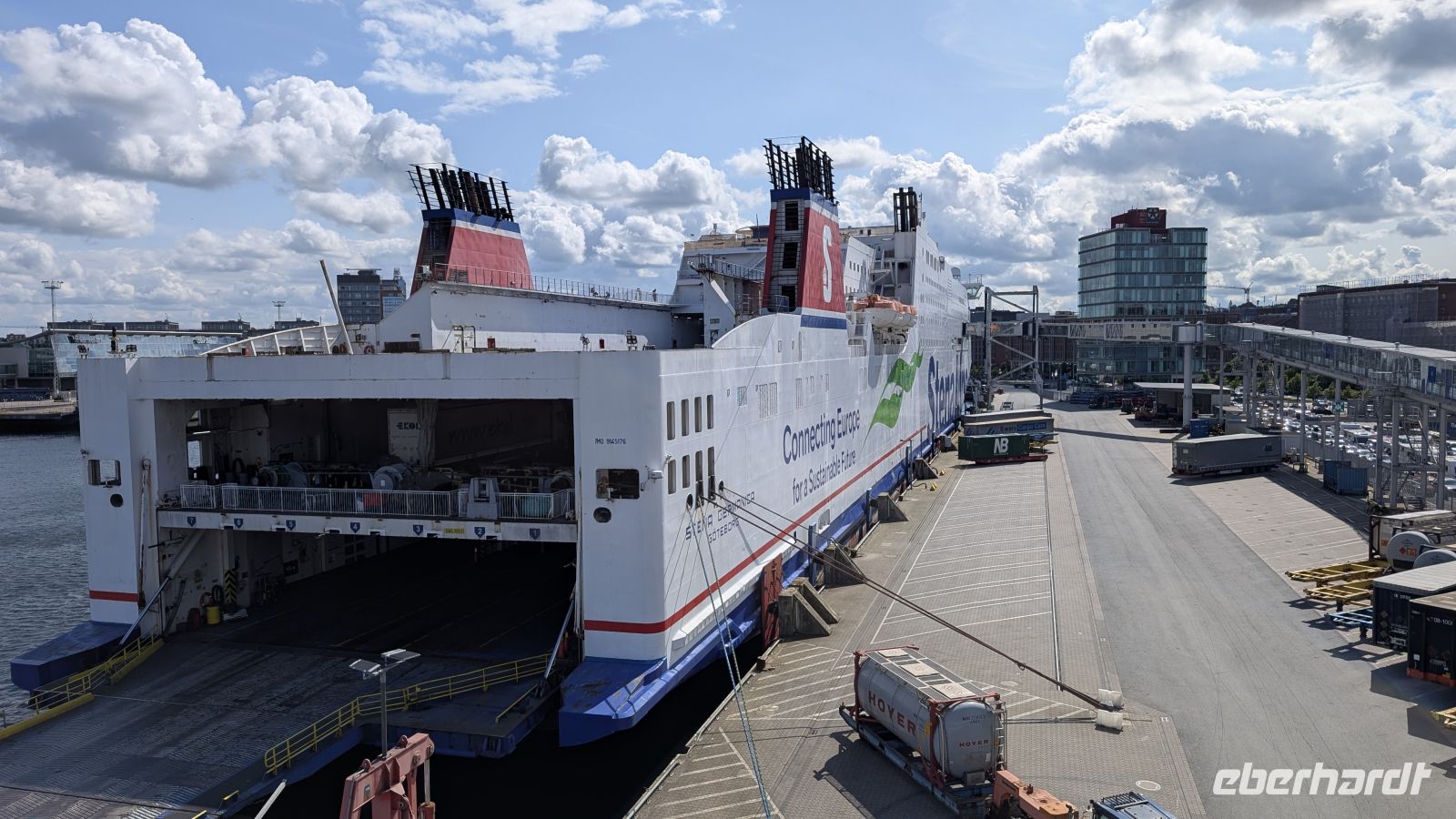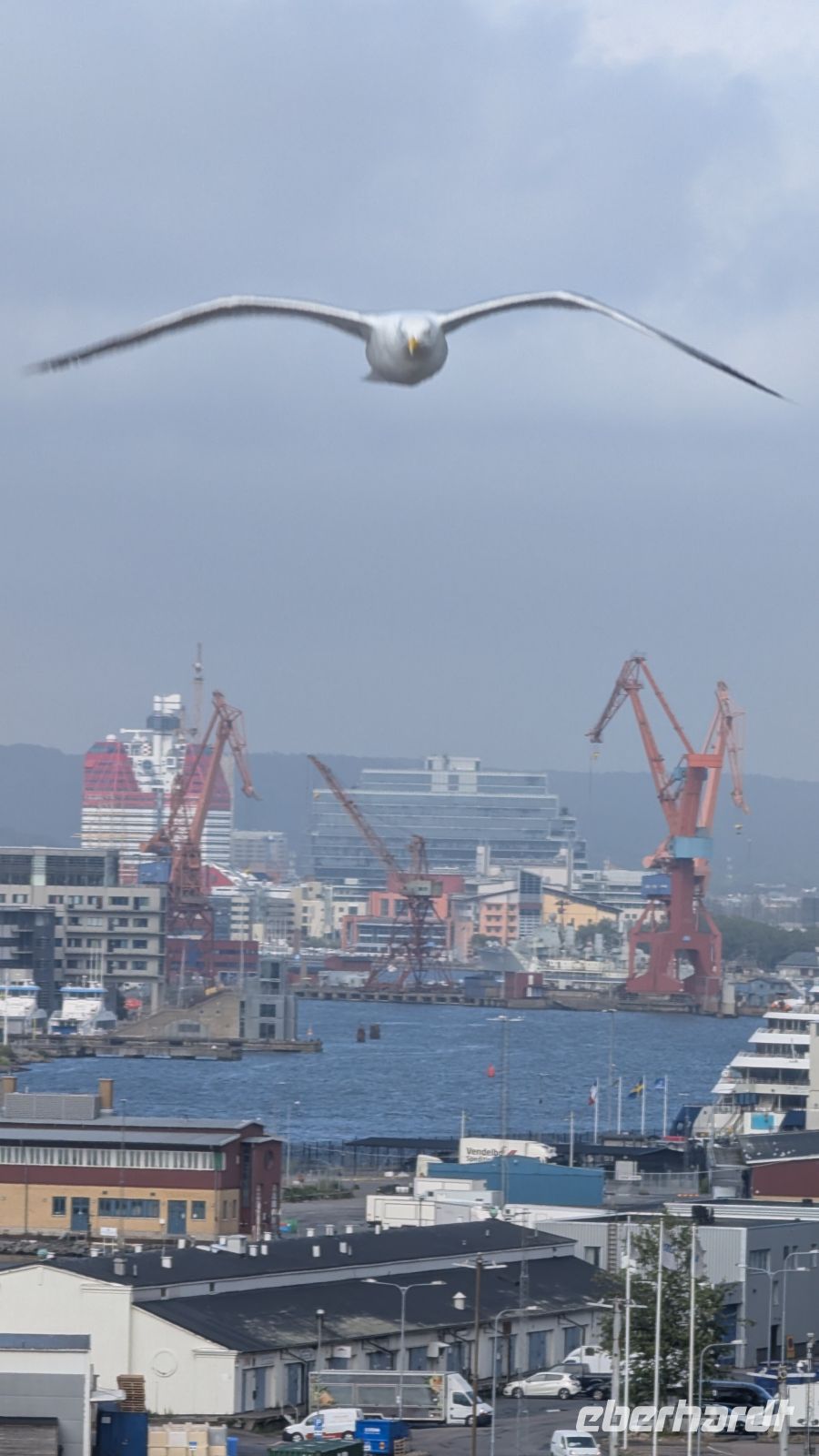 Der Morgen war wolkig und die Temperatur angenehm warm beim Einlaufen in Göteborg und als unser Schiff am Kai festgemacht hatte schien bereits die Sonne.