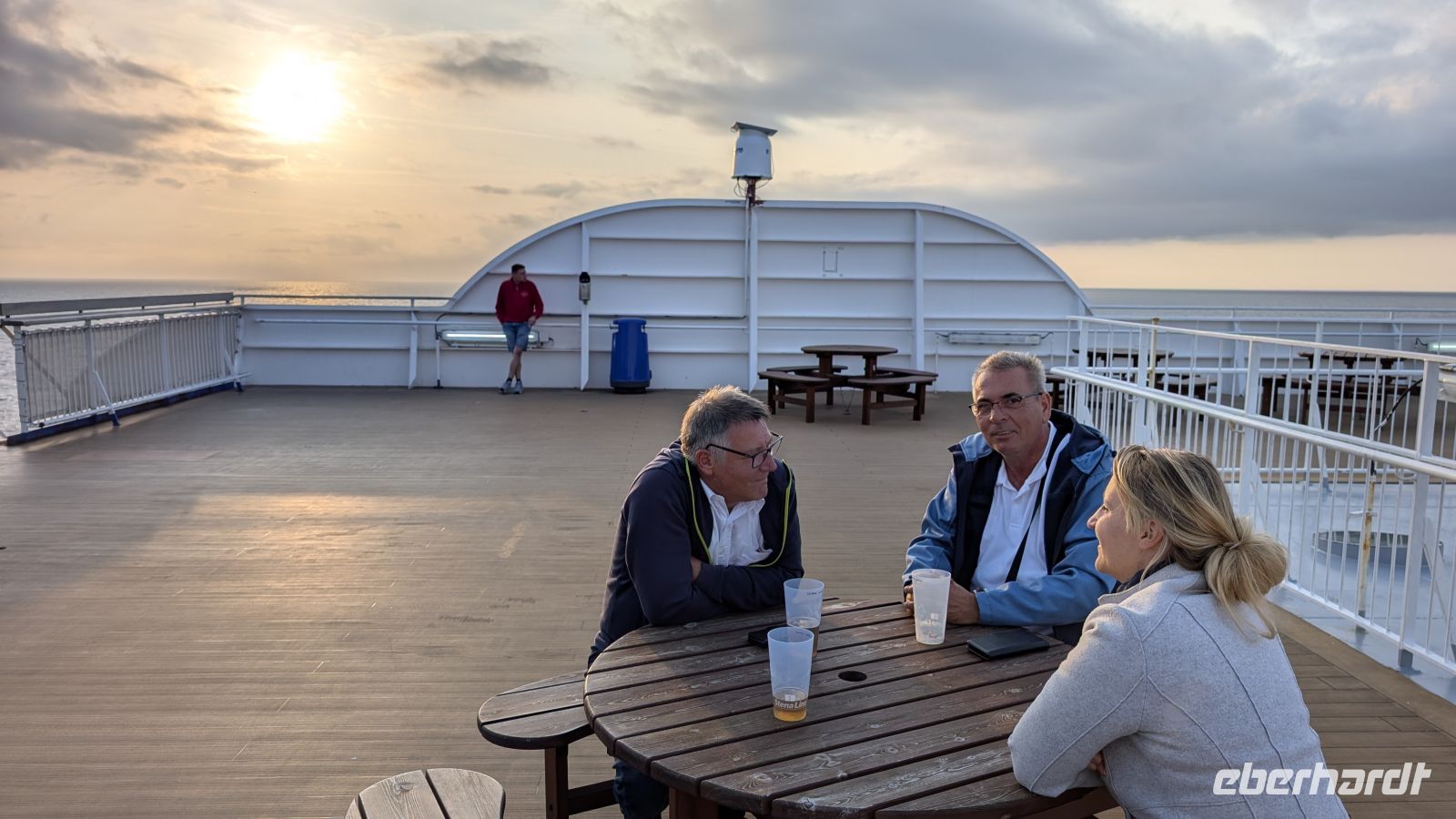 Eine ruhige See wurde uns in der Nacht geschenkt, ok, vielleicht mal ein bisschen Schaukeln, aber das gehörte dazu, man wurde sozusagen „in den Schlaf gewogen“. Es gibt’s nichts Schöneres.