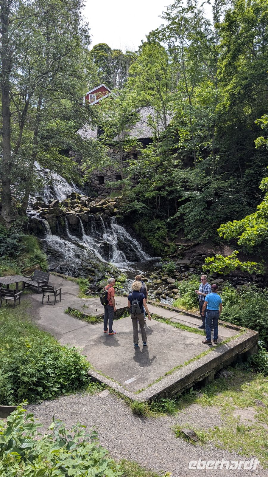 Also kleiner Besuch, etwas abseits der Hauptstrasse im Hopfenanbaugebiet von Schweden. Zwar keine Hallertau, aber immerhin sorgt er für ein gutes heimisches Bier. Ein kleiner Spaziergang hinunter zum kleinen Hafen und über den Wasserfall und durch den malerischen Ort aus dem 13. Jahrhundert wieder zurück zum Bus.